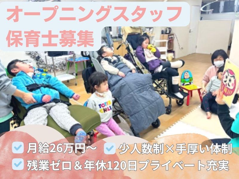求めている人材 <必須条件> ✅ 保育士資格 ✅ 子どもと丁寧に向き合える方 <歓迎条件> ・重心児支援が未経験でもOK ・児童発達支援/放デイでの経験 ・障がい児保育の経験 ・保育園・幼稚園での実務経験 【こんな方におすすめ】 ✅ ゆっくり丁寧に子どもと向き合いたい ✅ 少人数の落ち着いた環境で働きたい ✅ チームで支援したい ✅ オープニングに関わりたい ✅ 保育士としての専門性を長く活かしたい