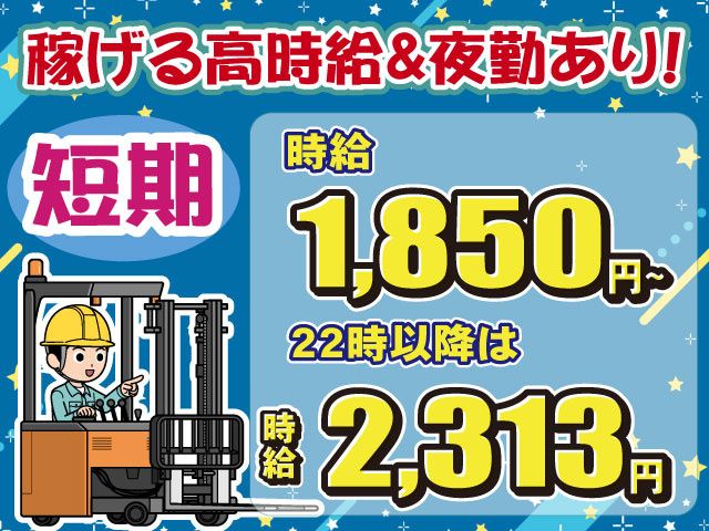【週払いOK!】夜勤固定で高時給&短期案件!リーチフォークでの入出庫・ピッキング/車通勤OK