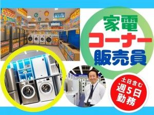 仕事内容 総合ディスカウントストアでの家電商品販売スタッフ募集 具体的には☆★ 冷蔵庫や洗濯機、掃除機など家電商品コーナーの 接客・販売 商品説明 品出し 展示 在庫確認 ・・・などのお仕事をお願いします。 新商品もいち早くお試しできますよ♪ ※家電販売は年齢層も幅広く 長くお仕事をしていただいているスタッフさんが多数在籍 コミュニケーションを取るのが得意な方、 販売経験のある方は是非、ご応募ください 安定した職場で、しっかり働けます。 ◎土日祝日を含む 週5日の勤務です ◎車通勤もOK お気軽にお問い合わせください [こんな人が活躍] 接客経験者、販売経験者 人とお話しすることが好きな方