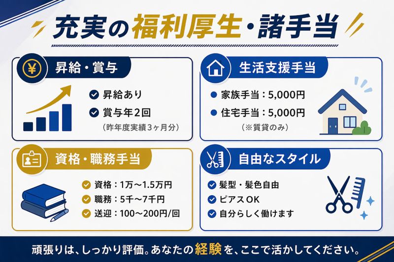 【応募資格】 【必須資格】 普通自動車免許(AT限定可) ◆学歴不問 ◆業界未経験OK/30代40代活躍中 【メリット】 #主婦・主夫歓迎 #フリーター歓迎 #残業月平均20時間以内 #未経験者歓迎 #住宅手当あり #経験者歓迎 #リモート面接OK #有資格者歓迎 #研修あり #社会保険完備 #制服貸与 #50代も応募可 #40代も応募可 #昇給あり #昇格あり #髪型・髪色自由 #賞与あり #ブランクOK #交通費支給 #長期休暇あり #駅近5分以内 #転勤なし