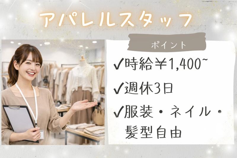 接客・販売の経験者にオススメ!Ꙭ|時給1,400円~|週3~OK|4時間~OK|服装・ネイル・髪型自由|社割あり|駅チカ