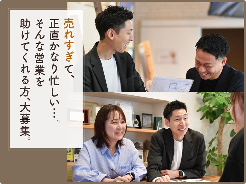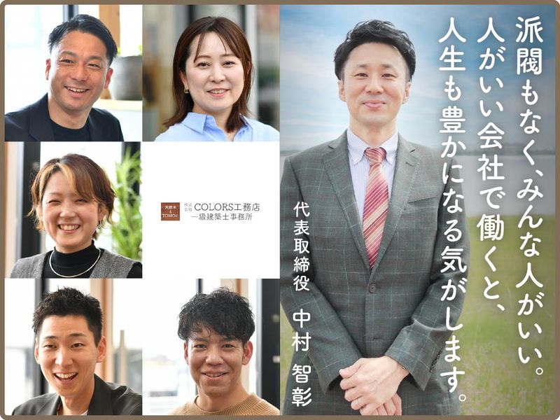 仕事内容 ◇◇◇ 営業アシスタントとして 資料準備や書類チェック、 連絡対応などを担当します。 営業とお客様のやりとりを スムーズに進めるサポート役です。 多くの人と関わりながら、 チームの中心として頼られるポジション。 +++- 住宅も、採用も。 「あ、なんかいいな。」から始まる。 それがCOLORS工務店の 「ひとめぼれ採用」です。 -+++ 「いいな、この人、この仕事、この会社」と 共感できている時にこそ、 最高のパフォーマンスができる。 しかもご機嫌に、楽しく(笑) だから私たちは「なんかよさそう…」 という感覚を大事にします。 私たちCOLORS工務店は、 天然木を使ったデザイン住宅で お客様の即決(ひとめぼれ)を 続々引き寄せ、絶好調です。 これからお伝えする社風や仲間に触れ、 あなたが「ひとめぼれ」できる、 会社か、ぜひ判断してみてください。 +++- ■あなたの力を必要としています。 -+++ ライフスタイリスト(営業)の 濵崎 悟、入社3年目です。 リゾートホテルの営業から転職。 ありがたいことに、 私たちの家づくりに惚れ込み、 事前に調べて来場されるお客様が とても多いんです。 そのため営業は日々、お客様対応で大忙し。 だからこそ今、営業を支え、 チームを動かしてくれる営業アシスタントの 存在が欠かせません。 お客様の不安をなくし、 理想の家づくりを実現するために。 営業と一緒にお客様を支える、 チームの大切な存在として 活躍していただけたら嬉しいです。 +++- ■ワイワイ楽しく、仲が良い♪ -+++ 入社3年目、ライフスタイリストの 水波 志帆です。元はネイリストでした。 この会社で働いていて感じるのは、 「一人で仕事をしている会社じゃない」ということ。 営業も、設計も、事務も、 みんなで支え合って家づくりをしています。 特に営業アシスタントの存在は、 本当に本当に本当に大きいんです。 資料の準備やお客様対応など、 細やかなサポートがあるからこそ、 私たちは安心してお客様と 向き合うことができます。 「助かりました」「ありがとう」と、 社内で自然に言葉が飛び交う。 そんな空気がある会社です。 だから社内もギスギスすることはなく、 派閥もなく、みんな本当に仲が良いんです。 社員旅行には家族や子どもまで 招待してくれるなど、 会社も社員をとても大切にしてくれます。 人を大切にする会社だから、 人間関係もあたたかい。 そんな環境で一緒に働きませんか。 +++- ■ライフステージに合わせた キャリアチェンジも可能。 -+++ 産休・育休を経てパートとして復帰したり、 土日休みを希望する元営業が 人事や広報として戻ってきたり…。 ライフステージに合わせた キャリアチェンジにも柔軟な会社です 社長に聞くと 「本人がどうなったら幸せかと考え、 話し合ってきた結果だよ」とニッコリ。 定期的に社長面談があり、働きやすさや キャリアなどについて考える機会を 設けています。 新しい取り組みや挑戦も 社長に提案すれば、「やってごらん?」と 背中を押してくれるはずです。 社風や仲間に触れて、 「ここで働きたい」と思えたなら。 きっとそれは、あなたの“ひとめぼれ”です。