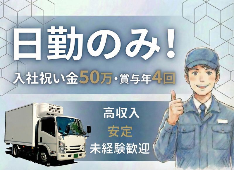 仕事内容 「日勤」のみ!! 生活リズムも、将来設計も。 整うドライバーという選択! 【この求人のポイント】 ✅国認定の「働きやすい職場」 二つ星企業 ✅社員寮制度・住宅支援あり →単身者も歓迎 遠方・転居希望者も安心 ✅食品配送で景気に 左右されない安定職 ✅入社祝い金50万円と 賞与年4回 ✅女性ドライバー多数活躍中 ✅千葉・東京エリア中心! 1日12〜13件×2回の 固定ルート配送 【仕事内容】 2〜3tトラックで、冷凍食品を 千葉県および東京14区を中心とした 大手コンビニ店舗 (1日12〜13件×2便)へ配送。 景気に左右されにくい 食品物流分野のため、 年間を通して安定した 仕事量があります。 国土交通省認定の下記を取得! 国に認められた安心・安全な 職場で長く働けます。 ・具体的な流れと 1日のスケジュール(例) ① 営業所に出勤・積込み(検品表に従って) ② 千葉・東京エリアの 大手コンビニ12〜13店舗へ配送×2回 ③ 帰社後、返品物の片付け・報告 ④ 退勤(翌日の準備もスムーズ ※決まったルートのため、 生活リズムも安定します。 【こんな方におすすめです】 ① 夜はしっかり休みたい方 「深夜・泊まり運行ナシ」で 日中だけ運転して 稼ぎたい日勤派の方 ② 生活リズムを整えながら、 安定した収入と 自分時間の両方を 大切にしたい方 ③ 家族との夕食や 趣味の時間など、 仕事後のプライベートも 妥協せず毎日を充実させたい方 ④ 体力勝負の夜勤や長距離よりも、 「日勤×運転スキル」で 無理なく長く続けられる仕事を 探している方 【弊社について】 有隣グループは、1952年に 設立された食品物流の リーディングカンパニーです。 コンビニチェーンなど 大手企業との取引を通じ、 70年以上にわたり首都圏の 食を支えてきました。 国土交通省認定の下記を取得! 国に認められた安心・安全な 職場で長く働けます。 【教育体制・キャリアパス】 入社後は同乗研修で コースや積み下ろしを丁寧に指導。 経験豊富な方は教育担当や リーダーへの登用もあり。 さらに希望や経験に応じて、 キャリアチェンジや 新たなチャレンジも可能です。 ●フローズンからチルド・米飯など、 配送商品の担当変更 ※希望があれば他営業所での勤務も可能 ●4t・10tなど 大型トラック乗務へのチャレンジ ●新人教育担当や 営業所管理職へのキャリアチェンジ 幅広い車種・商品に 対応できる “スーパードライバー”へ成長すれば、 自然と年収アップ・評価アップ にもつながります!