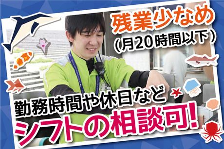 仕事内容 ☆職場は、大阪で有名な水族館☆ 大人気のジンベイザメやペンギンなど、 太平洋の生き物を中心とした 様々な表情を見せる展示が魅力の海遊館! 子どもたちの遠足や家族連れのお客様はもちろん、 今では海外の観光客からも大人気スポットです★ お仕事内容は、 水族館運営を支える“縁の下の力持ち”。 来館者の安心と快適を生み出すお仕事です。 【具体的な仕事内容】 *入館口での待ち列整理、団体応対 *エレベーター案内 *巡回、混雑緩和対応 *総合案内所での受付、落とし物管理 ※ 難しい業務は全くございません。 研修ありで未経験でも安心! ■ こんな人にはピッタリ! ・明るく丁寧な対応ができる方 ・人と接するのが好きな方 ・新しいことにチャレンジしたい意欲のある方 ・チームワークを大切にできる方 「接客が好き」という気持ちを歓迎します! 【ワークバランス重視!週4~5日で選択OK♪】 「週4日」で家事や学業などプライベートと両立したい! 「週5日」で安定した働き方をしたい! 働き方はアナタ次第です♪ □注目ポイントはココ!!希望休相談可能□ ”希望休が取りやすいから働きやすい” 予定に合わせて柔軟に働けるので、 「旅行に行くから連休にしたい」 「学校行事があるからこの日は休みたい」 「子どもが学校に行っている平日だけ働きたい」…など、 無理なく働ける、とスタッフ達からも大好評です◎ 【接客未経験歓迎!研修制度も充実で安心!】 「水族館で働きたい」 「人と関わる仕事がしたい」 など、応募のきっかけは何でもOK! お仕事も先ずは簡単な誘導からお任せしていきます。 未経験でも笑顔で挨拶ができれば大丈夫♪ スキルアップで時給もアップ! 英語が苦手な方も安心!先輩スタッフと一緒に学んでいきましょう! 研修では、仕事やり方はもちろん、 館内の情報やお客様からよくある質問などしっかりと学んでいただけます。 初めてでも「接客を学びたい」「人と話すことが好きな方」大歓迎です! ●「アクティオ株式会社」について● 公共施設や博物館・美術館など 文化施設の運営受託を手掛ける当社。 大阪では、関西エリアにある全国的にも有名な水族館など、 一度は耳にしたことがある施設の運営を受託しています。 特に近年は、自治体が運営する指定管理施設や大学の施設なども受託し、 地域と人をつなぐ街づくりへの貢献に取り組んでおります。