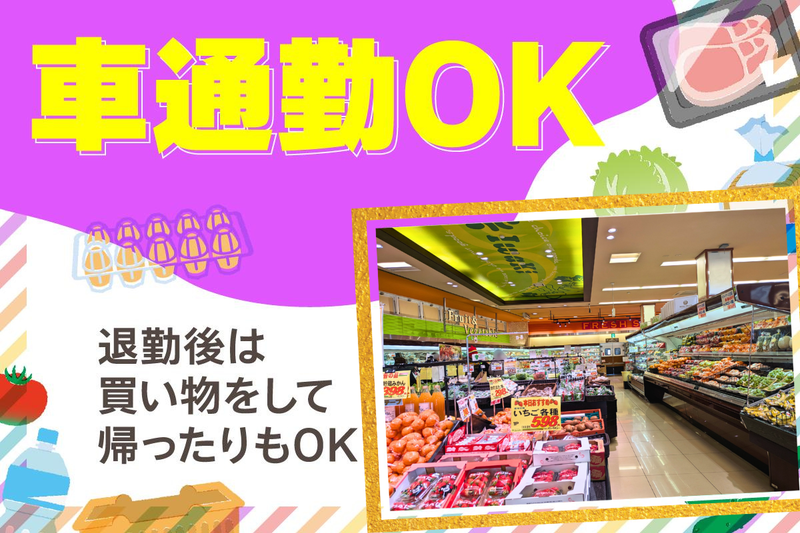 求めている人材 ⭐学生さん・フリーターさん・主婦さん ・シニアさんまで幅広い世代が活躍中 堅苦しい志望動機など必要なし◎ みなさんお気軽にご応募くださいね♪ < 経験不問 > < 年齢不問 > < ブランク不問 > 初バイト・初パートにもおすすめ◎ ___________ 働くスタッフの声  ̄ ̄V ̄ ̄ ̄ ̄ ̄ ̄ ̄ ̄ ・「子どもの学校時間だけ働けるのが 助かります!」(30代主婦) ・「健康維持のために無理なく 働けています!」(60代男性) ・「お仕事帰りに夕飯の買い物も 済ませられます♪」(40代主婦) ・「身近なスーパーで働きながら、 学業優先でお小遣いGET」(20代学生) ___________ 長く続けられる理由  ̄ ̄V ̄ ̄ ̄ ̄ ̄ ̄ ̄ ̄ 当店は、定着率がとても良いです◎ 学生さんなら卒業まで 主婦さんなら子供さんの成長に合わせて働き方を変えながら何年も シニアさんも長く元気に活躍してくれています。