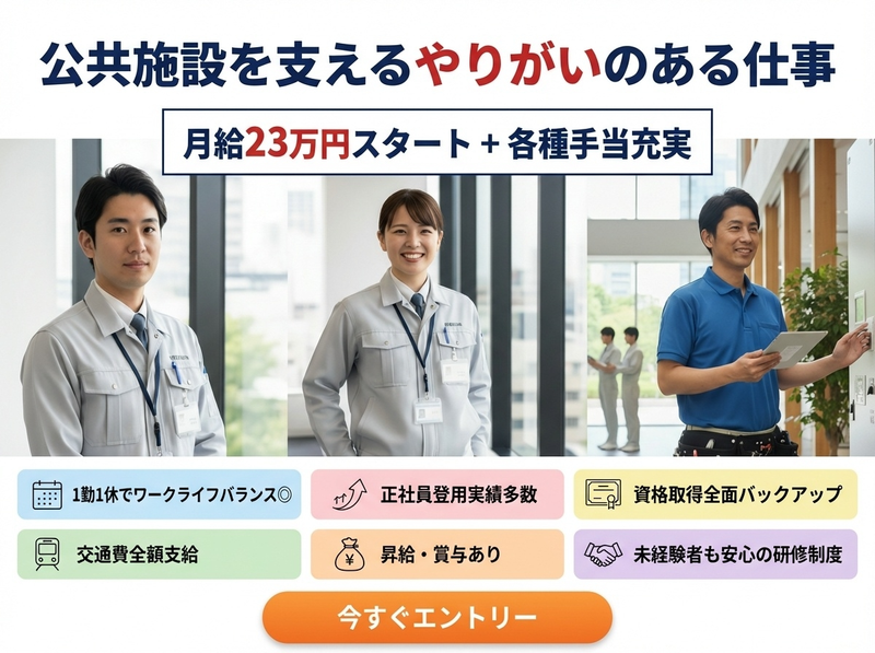 ⭐公共施設の設備管理/1勤1休で勤務✨月給23万+資格手当❗