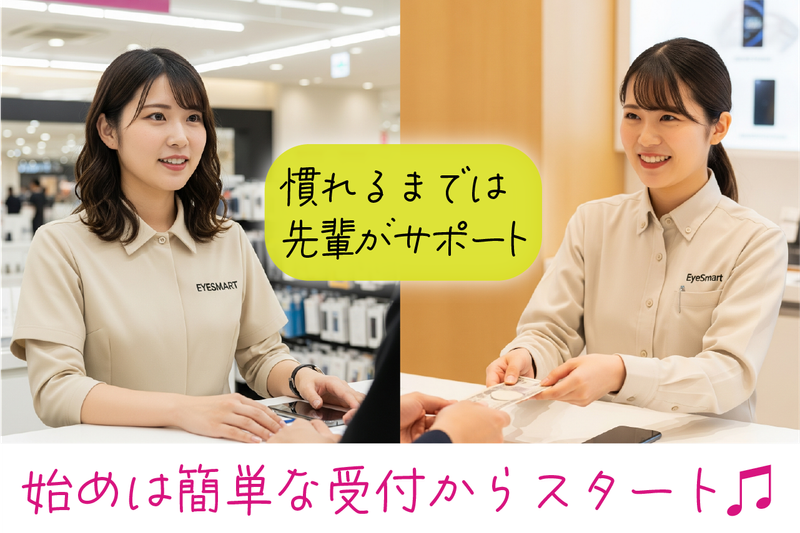 求めている人材 ✨一緒にEyeSmart(アイスマート)で働きませんか?【受付専任スタッフ募集】 ✅シフトについて 土日祝日に勤務できる方、お待ちしています❗ 平日のみも可!まずはご希望を教えてください。 1日2時間~、週に2日~OKです。 ✅学歴・経験不問!未経験者も大歓迎です! お店の「顔」として、お客様を笑顔でお迎えしてくれる方をお待ちしております。 修理の知識やスキルは一切必要ありません✨ ✅接客経験者も、もちろん歓迎! アパレルや飲食など、他業種での接客経験も活かせます! あなたのコミュニケーション能力を発揮してください✨ ✅お仕事内容について 私たちの仕事は、ただの受付ではありません。 「スマホを落として画面が…」「急に電源が…」 お客様は様々な不安を抱えてご来店されます。 お客様一人ひとりのお話をじっくり伺い、状況に合わせた最適なご案内をする、とても大切でやりがいのあるお仕事です。マニュアル通りの対応だけでなく、あなたの言葉で提案することが、お客様の「ありがとう」に繋がります⭐ お客様との会話を楽しみながら、その場に応じた柔軟な対応ができる方を求めています! ✅ファッションについて 髪型、髪色、ネイルは基本自由です✨ (お客様に安心感を与えられる範囲で、あなたらしいオシャレを楽しんでください!) <先輩スタッフからの一言> お客様の「困った」というお気持ちに寄り添える方なら、きっと活躍できます!専門知識は働きながら少しずつ覚えられますし、何より大切なのは「お客様のために何ができるか」を考える気持ちです。人と話すのが好きな方には、毎日が新鮮でとても楽しい職場ですよ!