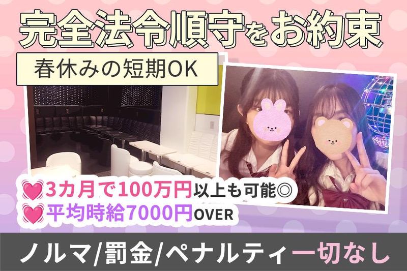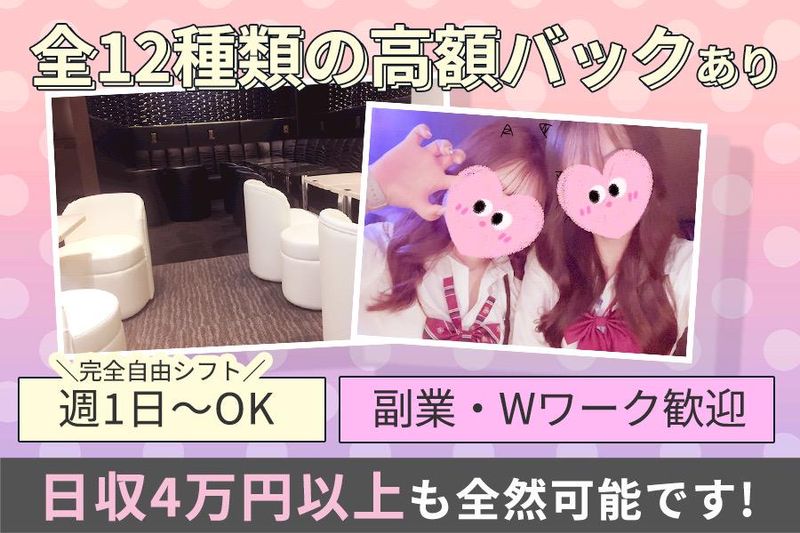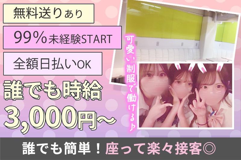 仕事内容 / 制服ラウンジmu-mii ”かわいい×ゆるい”ゆるカワ系 未経験の20代前半までが活躍中⭐ \ ◆mu-miiってどんなお店? ✨在籍の90%が未経験からスタート ✨都内で多くの店舗を手掛けるグループで安心 ✨JK風の可愛い制服で働ける ✨18~20代前半の未経験が中心 ✨3カ月の卒業制で短期でガッツリ稼げる! ✨完全法令順守徹底しています! ✨16時から働けるのでガッツリ稼げる♪ □ お仕事内容 □  ̄ ̄ ̄ ̄ ̄ ̄ ̄ ̄ ̄ ✅お客様のご案内 ✅ご注⽂のお伺い ✅簡単なドリンク/お酒作り・提供 ✅お⽚付け・清掃 ✅お会計 誰でもカンタンに始められる! お話し好きさんにも、聞き上手さんにも ピッタリなお仕事です⭐ 居酒屋やカフェなどの飲食店、 接客業や対人の仕事に抵抗がなければ大丈夫✨ まずは笑顔があればOK お客様も紳士的&優しいスタッフがサポートするので 未経験でも今すぐに活躍できる♪ お店で働いてるキャストの9割以上が 未経験スタートなので未経験の子の お仕事をサポートしてきた実績があります✨ ✅未経験でも安心スタート! ✅お酒が飲めなくてもOK ✅シフト自由 ✅未経験も最初から高時給 ✅安心の給与システム! ✅かわいい制服でオシャレも自由 ✅ノルマ・罰金一切なし! 安心して働ける条件を揃えています! ◥◣就活や将来へのチャンスも◢◤ さまざまな職業や年代のお客様が 多数ご来店するお店なので、 接客を通じて知見が拡がります! 自然とコミュ力、トークスキルUP! 将来の就活時に面接などの度胸や 自信・人間力も身に付きます☆ 働きやすい♪3カ月卒業制✨ …………………………………… 入店後~3カ月で卒業制のお店! 新人さんのみのお店だから 派閥も上下関係も一切なし! いつまでにいくら稼ぎたい! っていう目標も叶えやすいお店です✨ 3カ月で100万稼げることも全然あります! 平均時給7,000円OVER!?  ̄ ̄ ̄ ̄ ̄ ̄ ̄ ̄ ̄ ̄ ̄ ̄ 未経験に特化したお店で TOPクラスといえる還元率! 時給の上限はありません⭐ ✅入店祝金20万円あり ✅友達紹介で10万円プレゼント ✅日払いOK ✅衣装レンタル&ヘアメイク無料 ✅各種高額バックあり