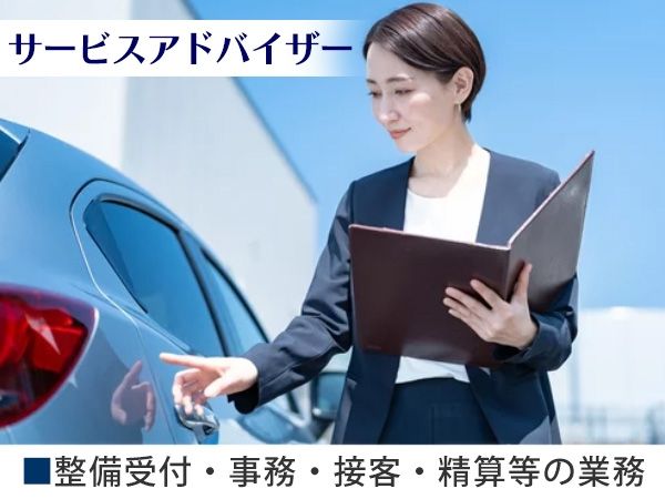仕事内容 お仕事内容は下記の通りです。 ●整備受付引渡し ●整備伝票の作成・精算業務 ●入出庫管理 ●お客様送迎 ●電話対応 ●架電業務 他 女性活躍中の職場です。