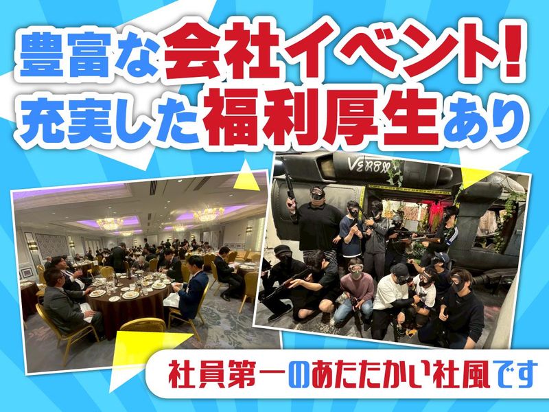 職場環境 今年の新年会はホテルで立食パーティを開催したりなど、イベントも盛りだくさん◎ 日々の頑張りを労う催し物や充実した福利厚生があるからこそ、「ここで長く働きたい」と思ってくれる社員は多いです。 仕事のオンオフを大切にしながら、会社の成長に貢献していきましょう! 喫煙所:なし(敷地内全て禁煙)