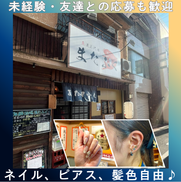 仕事内容 ――☆・。―――――――――――。・☆―― この求人のポイント⭐ ――☆・。―――――――――――。・☆―― ⭐駅チカ徒歩2分で通勤楽々♪ ⭐大型店舗ではないのでメンバーが仲良し ⭐終電あがりもOKでは働きやすさ抜群♪ 「またふく 堺東店」は、 アットホームな雰囲気の海鮮居酒屋! 堺東駅から徒歩たった2分、 通勤も便利な場所にあります♪ 20~30代の若いオーナーと店長が 切り盛りしているので、スタッフの意見も しっかり聞いてくれる、アットホームな 雰囲気が魅力です✨ 一緒にお店を盛り上げていく仲間を 大募集中です! * … * … * … * …* … * …* … ◤ ̄ ̄ ̄ ̄ ̄ ̄ ̄ ̄ ̄ ̄ お任せするお仕事 __________◢ ホールとキッチンどちらも 従事していただきます◎ ⏩ホール ・お客様のご案内とご対応 ・ドリンク・料理のオーダー取り ・料理やドリンクの提供 ・テーブルセッティング ・お会計 など ⏩キッチン ・基本的な調理作業 ・食材の準備 ・料理の盛り付け ・食器洗い など 飲食のお仕事が初めてでも大丈夫! 少しずつ業務になれてもらえれば 問題ありません⭐ わからないところは、 経験豊富なスタッフに頼れる環境です◎ * … * … * … * …* … * …* … \ 「またふく 堺東店」で働くメリット / ✅自分のペースで働ける! ┗週1日、1日3時間~シフト相談可能 ┗扶養内で働きたい方も歓迎 ┗掛け持ち勤務も応援! ✅うれしい待遇がいっぱい ┗頑張り次第でどんどん昇給! ┗深夜は時給25%アップ! ┗美味しい海鮮まかないあり ┗スタッフ割引あり ┗交通費は全額支給! ✅居心地バツグンの職場 ┗仕事中は真剣だけど、シフト後は みんなでワイワイ楽しく過ごせる アットホームな雰囲気が魅力✨ 就業後に新鮮な海鮮まかないを スタッフみんなで食べることもあって、 単なる職場じゃない温かさが自慢です! 常連さんとの会話も楽しくて、 やりがいを感じられる環境ですよ♪ ✅将来のキャリアアップも可能 ┗将来的には正社員登用制度も あるので、バイトからスタートして お店の中心メンバーになることも 夢じゃありません! ちょっとでも興味があれば、 お気軽にご応募ください♪ 。.。:+* ~ ~ *+:。.。:+* ~ ~ *+:。.。.。:+*~ 九条店 天下茶屋店も同時募集中♪ 皆さんからのご連絡お待ちしてます! 。.。:+* ~ ~ *+:。.。:+* ~ ~ *+:。.。.。:+*~