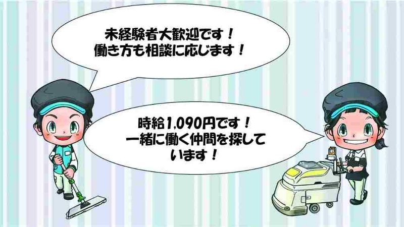 PRコメント 長く安心して勤めて頂けます。 学歴・経験・年齢・性別不問 未経験からスタートしたスタッフがほとんどで他業界からの転職者も多数活躍中です。 【仕事内容】 新山口駅等やJR関係庁舎等の清掃 <仕事内容> 駅のホーム、コンコース、トイレ(男女)関係庁舎等の清掃 *事務所出社後現地に向かい、終了後は戻ります。 *入社後は見習期間がありますので、初めての方でも安心して働くことができます。