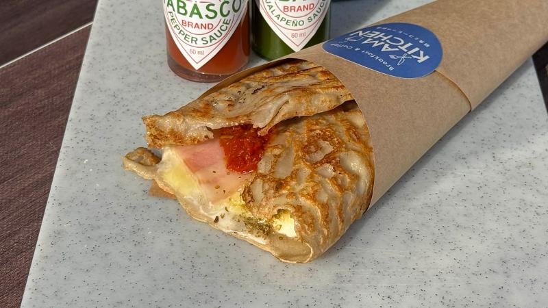 キッチンカーでの朝食調理スタッフ