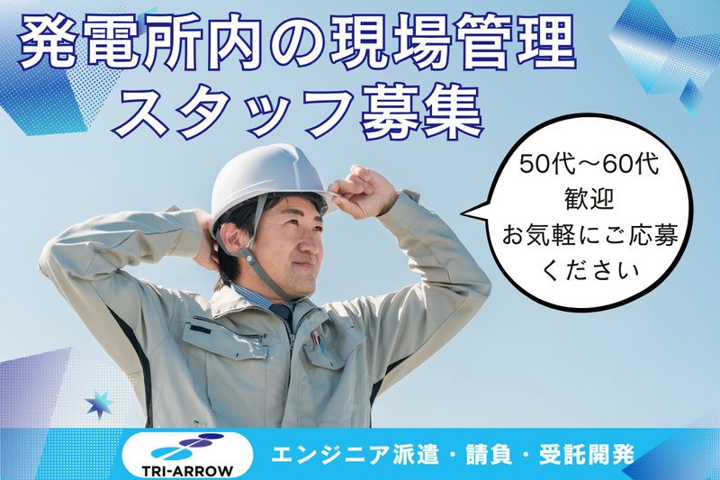 ■求める人物像・資格 応募条件 【応募条件】 ・プラントに限らず、何等かの現場経験がある方(現場経験とは、建設業に限った経験でなくても検討可能) ・発電所の工事・メンテナンス等の仕事に興味がある 【尚可】 ・「フルハーネス特別教育受講者」 ・火力発電所若しくは石油プラント等での現場監督業務(作業経験でも可)