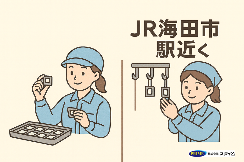 仕事内容 【日勤】8:15~17:00 【休日】土日 \未経験歓迎!活気ある自動車部品工場でのお仕事/ 【職場について】 50名規模の自動車関連工場です。 プライム女性スタッフも活躍中で、ガチガチした雰囲気はなく、活気があり働きやすい環境です。 幅広い年齢層が活躍しており、異業種からの転職者も多数! 日勤のみで無理なく続けられる職場です。 【お仕事内容】 ◆ 検査作業 手のひらサイズの小さな部品を手に取り、不良がないか目視で確認するシンプル作業です。 ◆ 吊りかけ作業 フックのついた専用枠に部品を引っ掛けていくだけの単純作業です。 どちらも まずは簡単な作業からスタート! 慣れてきたら徐々にできる作業を増やしていき、 最終的には一人でもくもくと進められるようになります。 - 出張面接OK 給与の週払いや前払いも可能です。 職場見学が可能なのでしっかり見てから決めることも可能です。 専属の担当が見学から入社後までフォローいたしますのでご安心ください。 -