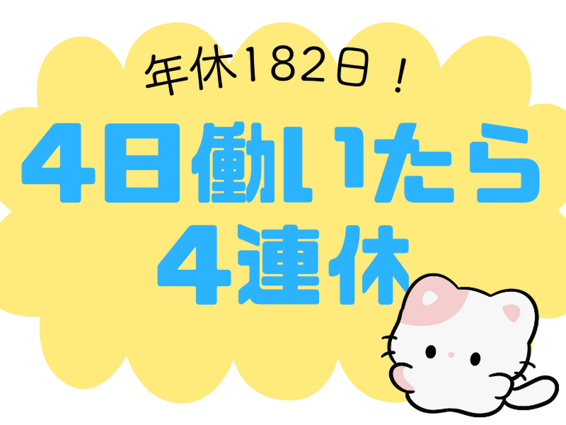 アピールポイント: \4日働いたら4日おやすみ!/ 年間休日は182日で、 月の半分も休めるのに 未経験から月34万可能! 更に工場内には 食堂も完備されており 嬉しい売店も完備です◎ ・高収入 ・経験が活かせる ・車通勤可 ・無料送迎あり ・年間休日182日 ・幅広年代活躍中 ・シンプル作業 ・寮あり ・充実のサポート体制 ・食堂、休憩室完備 (食堂メニューあり) ・自販機あり ・売店アリ ===前払い制度あり=== 日払いも、週払いもOKです! 今月ピンチ…そんな時に超便利! スマホのアプリでサクッと申請! \お気軽にご相談ください!/