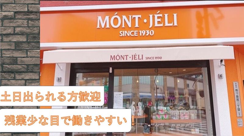 仕事内容 / 地下鉄「中島公園駅」スグ! 長く愛される洋菓子店の 販売スタッフ募集*・。 \ 【具体的には・・】 ・接客 ・レジ ・ケーキの箱詰め など ケーキ・シュークリームなどの洋菓子に、クッキーやカヌレなど焼き菓子の販売など店内業務全般をお任せします。 ケーキや洋菓子が好きな気持ちがあれば、販売経験がなくても大丈夫! 基本から丁寧にお教えしますよ。 お客様に喜んでいただけるスイーツを、私たちと一緒にご提供しませんか? << 「モンジェリ 札幌」で検索! >> 【モンジェリってどんなお店?】 創業90年以上の歴史ある洋菓子店<モンジェリ> オレンジ色の壁が目印です。 1930年の創業以来、ケーキやシュークリームをはじめ、クッキーやパウンドケーキなど種類豊富な焼き菓子をお届けしています。 様々な方が働いていますが、スタッフみんな甘いものがだ~い好き*。 お仕事終わりに自分へのご褒美として買って帰る人も多いんですよ! ちょっと特別な日にも・・・ いつもの日常にも・・・ 甘いものを食べて一息つく、そんな幸せな時間をつくるお手伝いをしています。 定番人気なのが「カヌレ」!! 外はカリっと、中はしっとり。 一度食べたらまた食べたくなる・・・ ちょっと懐かしい、心がほっこりする、そんな味。 ここでしか食べられないカヌレを求め、 遠くから足を運ぶお客様や常連さんもたくさんいるんですよ! 「老舗洋菓子店って堅苦しい雰囲気なんじゃ・・・」 心配ご無用!肩ひじ張らない、穏やかな時間が流れる場所・・・ それが<モンジェリ>です。 販売なので、もちろんお菓子作りの知識や経験も必要ありません! 志望動機は 「ケーキ屋さんで働いてみたかった」 「スイーツが好きだから~」 などで全然OK! 一緒にお店を盛り上げていきましょうね!!