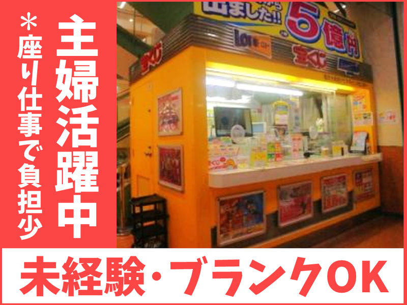 仕事内容 <40~50代の 女性スタッフを中心に活躍> 《 明るく笑顔でお客様対応ができればOK 》 「子どもも大きくなってきたから社会復帰」等 子育てが一段落した方も歓迎!ブランクOK 〇『冷暖房設備』×『座り仕事』=快適!〇 業務に慣れたら売り場を一人で担当! 自分のペースで、のびのびと働きたい方に! - ・ - ・ - ・ - ・ - ・ - ・ - ・ - ・ - ・ - 【仕事内容】 宝くじ売り場での業務全般をお任せします! 【具体的に】 *宝くじやスクラッチなどのくじ販売 …紙くじ・数字選択式宝くじ など *当せん券をお持ちの方への換金対応 …一定額以上は銀行対応のため安心! 《 丁寧なOJT研修で活躍可能 》 未経験スタートでも安心していただけるよう 各種研修・マニュアルをご用意しています! \ 働きやすさのポイントはココ! / 〇 当せん結果は機械にお任せ! …機械が判断するので対応も簡単にできます 〇座り仕事のため負担少なめ! …冷暖房完備で体の負担なく働けます 〇希望のお休みも取りやすい …子供の学校行事や外せない用事など相談〇 - ・ - ・ - ・ - ・ - ・ - ・ - ・ - ・ - ・ - 【 先輩スタッフの声 】 近くで働きたいなと思っていた時に、 たまたまここを見つけて応募しました。 仕事はイチから丁寧に教えてもらえます。 一通り仕事を覚えたら、基本1人業務で 自分のペースで働けます! 1等などの上位賞も度々出ていて、 お客さまにここで買って当たったよ! と声をかけてもらえることに やりがいを感じます! ショッピングモール内の店舗だから、 仕事の前後に買い物ができるのも 嬉しいポイントです! ※2026年4月1日.合併により (日本宝くじ販売株式会社)に社名変更。