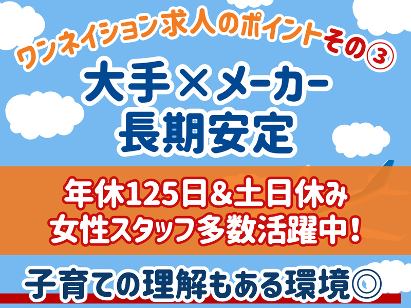 仕事内容 ✨お電話でのお問い合わせも大歓迎✨ \TEL: 052-933-3399 (採用担当)/ ▶出張面接・WEB面接も実施! +―――――――――――――――――+ 【無期雇用派遣のお仕事です。】 仕事が終わっても雇用は継続。 派遣でも安定が手に入る時代! +―――――――――――――――――+ 想像以上に働きやすい。 そう話す社員が多い職場環境です。 女性スタッフ多数活躍中! 子育ての理解もある職場環境です。 ……………………………………… おすすめポイント ……………………………………… ◎重たいものは持たなくても大丈夫  ̄ ̄ ̄ ̄ ̄ ̄ ̄ ̄ ̄ ̄ ̄ ̄ ̄ ̄ ̄ ̄ ̄ 扱う部品は小さいと手のひらサイズです。 組立ではなく「組付け」なので 重たいモノを持つことはありません。 ◎危険な作業はありません  ̄ ̄ ̄ ̄ ̄ ̄ ̄ ̄ ̄ ̄ ̄ ̄ ̄ ̄ ̄ 主に携わるのはパーツの組みつけなので 危険が伴う手作業や機械操作がない 仕事になります。 ◎汚れることもありません  ̄ ̄ ̄ ̄ ̄ ̄ ̄ ̄ ̄ ̄ ̄ ̄ ̄ ̄ ̄ 油で手や服が黒くなる心配がなく、 清潔なまま働けます。 ◎外気の影響、ありません  ̄ ̄ ̄ ̄ ̄ ̄ ̄ ̄ ̄ ̄ ̄ ̄ ̄ ̄ ̄ オフィスの室内空間のように冷暖房完備。 冬は暖かく、夏は涼しいので 快適環境で働けます。 ◎深夜に働くこと、ありません  ̄ ̄ ̄ ̄ ̄ ̄ ̄ ̄ ̄ ̄ ̄ ̄ ̄ ̄ ̄ 17時10分定時の日勤だけ。 残業しても18時ごろには終業することが 多いです。 ◎有休の取りづらさ、ありません  ̄ ̄ ̄ ̄ ̄ ̄ ̄ ̄ ̄ ̄ ̄ ̄ ̄ ̄ ̄ 有給を100%消化する社員ばかり。 公休と合わせて1年で130日以上の 休みを取れます。 ……………………………………… 仕事内容 ……………………………………… 世界的な大手工作機械メーカーで 働いていただきます。 工作機械とは、金属に穴をあけたり 削ったりして製品を作るための機械です。 そんな機械の組みつけに携わり、 世界中の大手メーカーの工場に納入します。 <具体的には…> ■パーツの分解 工具や機械を使い、 まず型からパーツを外します。 取り外した部分に残るトゲを削って キレイにすることも大切です。 ■組みつけ 説明書を見ながらパーツを組みつけ。 プラモデルを作る感覚に近いです。 目の前で製品ができあがっていく モノづくりの醍醐味が味わえます。 ※他の工程に携わってみたい場合は 教えてください。 電気の配線を取り付ける工程や、 運搬をメインで担う工程などもあります。 ……………………………………… 勤務地(派遣先) ……………………………………… 住所:岐阜県美濃加茂市蜂屋町中蜂屋山崎333 ★加茂野駅から車で8分 ★マイカー通勤OK!駐車場を完備 ★転勤ナシ ……………………………………………… 募集背景 ……………………………………………… モノづくりの現場に欠かせない 人材の派遣などを手がけている当社は 大手企業とも多数取引しています。 今回は、世界的な大手工作機械メーカーで 働く人員強化のための募集です! ぜひ、あなたも当社で働きませんか? ◤……………………………………… ⏩ ワンネイション求人のポイント ………………………………………◢ ✨ワンネイションの「常用雇用」採用! 一般的な派遣とは違い、雇用が安定 プロジェクト終了でも雇用継続で安心 ✨月給制+賞与+昇給あり! 長期休暇でも給料が減らない安心感 評価基準が明確で昇給の道筋もクリア ✨年間休日は125日以上&土日休み案件多数! プライベートも時間も大切にできる しっかり休めてワークライフバランスも安定 ✨サポート体制充実! 月1回・15分程度の面談で悩みをしっかりフォロー 現場で言いづらいことも、当社担当者が間に入って調整