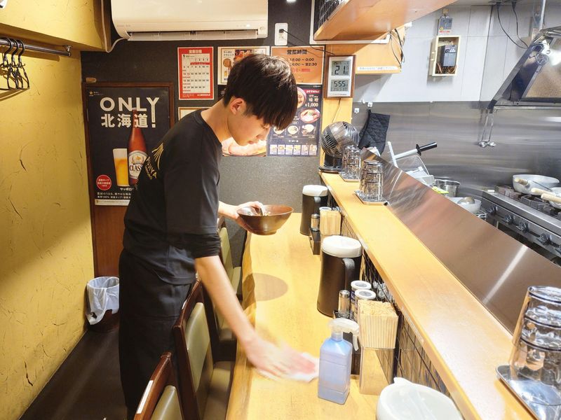 仕事内容 ▼▼▼▼▼▼▼▼▼▼▼▼▼▼▼ すすきの「新ラーメン横丁」で、 バイトデビューしちゃいませんか~~!! ▲▲▲▲▲▲▲▲▲▲▲▲▲▲▲ 学校終わり・お休みの週末だけ・・・など、 シフトの自由度は高め◎ スタッフのほとんどが学生さんです✨ 先輩み~んな新しい後輩を楽しみにしてますっ! \入社はすぐじゃなくても大丈夫/ ◆新学期の時間割が出てから ◆新しい環境に慣れてから ◆引越しが落ち着いてから あなたのペースで、あとからでもok✨ ⭐スタッフは学生6名+社員1名だけ ⭐学校終わりに直行できる ⭐席数はたった8席 【おしごと内容】 すすきの「新ラーメン横丁」にある ラーメン屋さんにて、 ディナーのホールをお願いします!! ✅お客さんを席に案内 ✅食券をもらって厨房へ持って行く ✅席までラーメンを運ぶ ✅テーブルを片付ける ✅お皿洗い 「いらっしゃいませ!」 「こちらへどうぞ!」 「お待たせいたしました!」 「ありがとうございました!」 むずかしい接客・敬語はナシ! 定番のこのセリフを言えればok!! シンプルな”食券制”だから、 複雑なレジ対応はなくて、 はじめてさんも安心⭐ 8席だけのこじんまりした店内だから、 あっちへバタバタ・・・ こっちへバタバタ・・・ なんて大変なことはありません! \推しポイント/ ✅日曜・月曜はぜったい休み 日曜はお友達や家族との予定が・・・ 月曜はゆっくりしたい・・・ 平日にも週末にも休みがあるから、 プライベートもバッチリ充実⭐ ✅すすきの駅から徒歩30秒~1分くらい 駅から近すぎるラーメン屋!! これからのさむ~~~い季節に ありがたすぎる好立地✨ ✅まかない! グランド・限定メニューの他、 食べたいものを言ってください! タダで自慢のラーメン食べれます✨ ちなみに、看板メニューは味噌ラーメン! \こんなメリットも・・・!/ 「お小遣いGETしながら、 大好きなラーメンがタダで 食べれちゃう!一石二鳥!!」 「新生活にも慣れてきて、 バイト先で新しい仲間も✨ まかないで食費浮いてラッキー!」 「接客でハキハキ喋ることとか、 敬語を使うのに慣れているから、 就活に役立った!!」