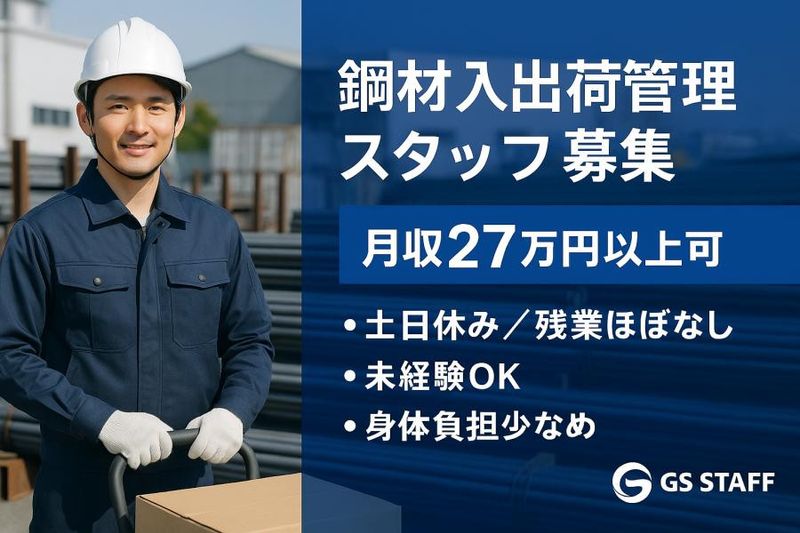 【仕事内容】 未経験から始められるお仕事です。鋼材の入出荷を管理していただくお仕事です。 ■■■おすすめポイント■■■ ✅大手メーカー構内での安定した勤務環境! ✅構内外での入出庫管理業務! ✅重量物の荷役なし!身体の負担が少なめ! ■■■お仕事内容■■■ 大手製鉄メーカーの長尺鋼材(約5.5〜6.5m/約2t)の入出荷を管理して頂くお仕事です。 ⏩️構内内外への製品の入出庫管理作業 ⏩️トレーラー荷台での荷札確認等 ⏩️野外製品枠(ヤード)の枠管理 ⏩️品質シール貼り作業 ⏩️PCでの製品管理(確認・照合)作業 ※事務(屋内)作業:現場(屋外)確認作業 ⇒ 1/3:2/3の割合 【具体的な1日の業務流れ】 ▶朝礼・・・業務打ち合わせ ▶本日の入出庫の車両台数と製品枠の確認 ▶受入~ヤード内の置き場確認 ▶事務所にて品質合格指示の確認~現地現物に合格シール貼り~品質完了確認 【職場見学・1日体験も実施】 入社する前に実際に働く現場をぜひ見学ください。実際に勤務する場所を見て頂くことによって、安心してお仕事を開始できると思います。 ■■■安心のサポート体制■■■ ✅入社祝い金「3万円プレゼント」 転職時は何かとお金がかかるもの。 そこで、60日以上勤務された方には「入社祝い金」として3万円プレゼント! ✅即!週払いOK! 入社して1週間の勤務から申請OK!最短で翌日に振り込まれます。 ✅キャリアアップも安心! 定年まで安心できるキャリアづくりを一緒にしていきましょう。 GS STAFFは「短期派遣で人を回す会社」ではありません。スタッフを大切な仲間と考え、資格取得支援・スキルアップ研修・長期的な働き方を本気で応援します。 「ずっとこの業界で頑張りたい」その気持ちを、私たちが守り抜きます。 ~~~~~~~~~~~~~~ GS STAFFはココが違う! ~~~~~~~~~~~~~~ ①現場経験者だからこそ、気持ちが分かる! 社長を含め全員が現場の経験者。働く現場の楽しさや厳しさを知っているからこそ、悩みごとや不安にはしっかりと寄り添うことをお約束します! ②経験豊富なスタッフの徹底サポート 派遣業界を長く経験してきた営業担当や内勤スタッフが、未経験者も経験者も、お客様も含めてしっかり支えます。 「困った時に誰に相談すればいいんだろう?」──そんな不安は一切不要。私たちは必ず一緒に解決の道を探し、安心して働けるように伴走します。 「久しぶりの面接で緊張する」「職場に馴染めるか不安」など、どんなお悩みでもお気軽にご相談くださいね。 ③「全部大事にする」姿勢 家族も大事、仕事も大事、仲間も大事、お客様も大事。どれか一つを犠牲にするのではなく、すべてを大切にすることが私たちの考え方です。そのバランスの上にこそ、最高の働き方と人生があると信じています。 ④有休取得率90%超え! 元々お休みの日を有休に切り替えることも可能です!お子さんのイベントや旅行など、プライベートも大切にしてくださいね。 ⑤選んでいただいた感謝を忘れない 星の数ほど会社がある中で、GS STAFFを選んでくれた──その事実に心から感謝しています。 だからこそ「この会社にしてよかった」と思っていただけるように、仕事のやりがいも、プライベートの充実も、どちらも大切にしています。 またGS STAFFはGSホールディングスに所属しています。多岐にわたる事業展開により堅実に成長しており、安心して働くことができます✨ 【求人ID-KK001】