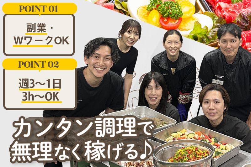 【アピールポイント】 \大阪で人気のケータリングサービスが東京に進出!/ 調理スタッフのオープニングスタッフをパートアルバイト募集 ◆週3日~・1日4h~勤務OK ◆未経験可 ◆副業・WワークOK ◆主婦(夫)さん活躍! 土日祝勤務できる方積極採用中!