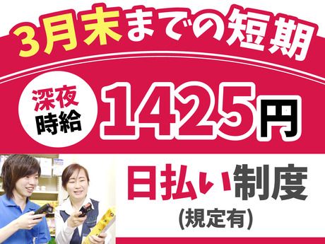 仕事内容 <夜勤のみ/未経験OK>接客なし!黙々作業が好きな方歓迎♪ コンビニや100円ショップ等で商品を数えて、 スマホサイズの端末に数を入力するお仕事。 この冬限定の稼働ボーナスあり! 初日出勤後5000円、5日出勤で5000円 計10,000円支給!(規定有) <具体的には…> (1)スマホサイズの端末で商品バーコードを読取 (2)商品の数をカウント (3)端末に数を入力 ★重たい荷物の移動なし 勤務先の店舗は… 100円ショップやコンビニ、スーパー、 アパレルショップ、 書店、ドラッグストア、 雑貨屋、ホームセンター、調剤薬局 など ※基本直行直帰 ※営業所から無料の送迎も有 ※勤務地は毎日異なります ※近隣の市区町村や隣県のお仕事もご案内可能。 1日の流れをご紹介 <作業先へ直行> ↓ <到着・作業> 任された範囲の商品を数えて端末に入力。 基本的に接客なしのコツコツ黙々軽作業。 頼りになるリーダーがいるので安心 ※休憩をはさみながら進めるので リフレッシュしながら作業可能 ↓ <直帰> ※駅チカ案件多数。営業所からの無料送迎も有 タイパ重視の方にオススメ!ココで働くメリット ■夜勤で効率よく稼げる ■週1日~OK!空いてる日にサクッと働ける ■日払いOKで急な出費に対応可 「今月ピンチ!!」「出費が…」なども大丈夫♪ ■接客なしの単純作業 すぐに慣れられる◎ ■学校以外で友達ができる ■応募~勤務開始決定までスマホだけで完了 こんな方が活躍中! ◆バイトが初めての方 ◆”遊び”や”趣味”に使うお金を稼ぎたい方 ◆夢や目標に向かって頑張っている方 ◆バイト仲間を作りたい方 ◆学校が休みの日だけ働く方 ◆子育てが一段落した方 ◆久しぶりの仕事復帰の方 ◆コツコツ黙々作業が好きな方 ★シンプル作業&サポート体制ばっちり◎ 棚卸未経験&ブランクある方も安心