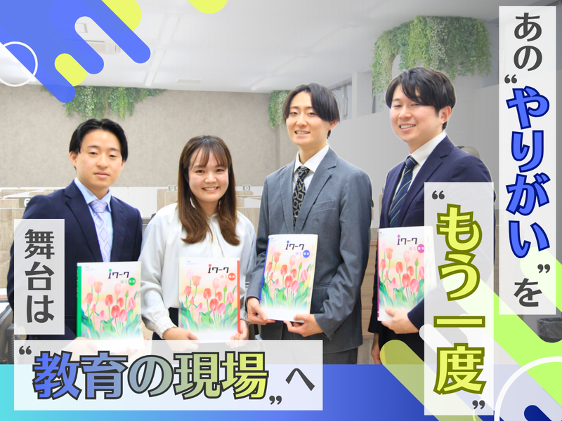 仕事内容 その仕事、関わりは “一瞬”で終わっていませんか? 販売や営業は その場限りの関係になることが多い 一方で教育は違います。 毎週同じ生徒と向き合い 成長を一緒に見届ける仕事です。 講師経験がある方ほど このやりがいを知っています。 一度別の仕事に就いたあと 「やっぱり教育に戻りたい」 そんな理由で入社する方が多いです。 【講師経験がキャリアになる】 授業経験をそのまま活かせる環境 授業だけでなく 教室運営にステップアップ可能 2年目で教室長の実績あり 年収500万円以上の実績もあり 成果は給与にしっかり反映します。 【評価と収入が明確】 評価基準や教室の実績はすべて開示 何を伸ばせば良いか明確です。 初年度から賞与で年収アップも可能 成果に応じて収入が伸びる環境です。 【キャリアアップ事例】 元講師から2年目で教室長 4年でブロック長へ昇格 講師経験がある方ほど 早期に成長できる環境です。 【教室長は経営ポジション】 教えるだけではなく 教室全体を動かす仕事です。 売上管理 生徒数管理 講師の採用や育成 保護者対応など 教室運営すべてに関わります。 【仕事内容】 個別指導塾の教室長として 教室運営全般を担当します。 具体的には ・生徒 保護者対応 ・講師の採用 育成 ・学習計画の設計 ・教室の数値管理 教育に関わりながら キャリアアップを目指せる仕事です。