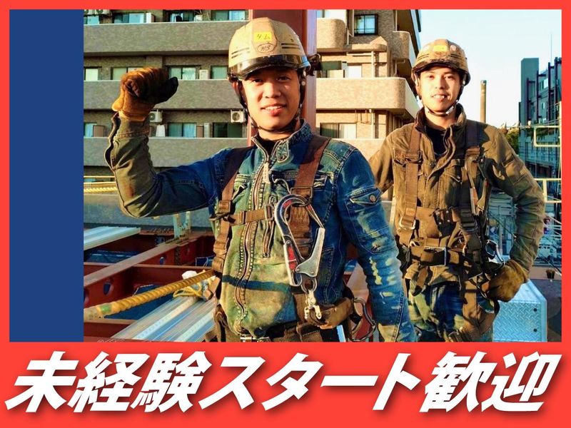 仕事内容 建設現場で組み立られた鉄骨に床を張っていく 「デッキ屋」と呼ばれるポジションの業務を担当いただきます! <具体的には> ■デッキ敷き込み 荷揚げしたデッキを広げます。 ー ■デッキ納め デッキを敷き込む場所に合わせて デッキの長さや短さを調整するため 切断加工を行います。デッキを溶接 して取り付け、作業を完了させます。 =================== 未経験でも安心して始められる =================== 作業を安心して取り組めるように、 ハーネスと呼ばれる装備を しっかりと用意し、安全管理を徹底して います。初めて作業を行う方でも 安心感を持ってもらえる準備があります! 現在20代・30代・40代が活躍しています。 協力し合いながら作業に着手。 面倒見のいい先輩ばかりだから、 経験が浅いメンバーへのサポートを しっかりと行いながら、できる作業を 少しずつ増やせるように伴走します! ================== ステップアップもできる環境あり! ================== デッキ屋と言われる床を張っていく ポジションから鍛冶屋と呼ばれる 鉄骨加工のポジションへ業務の幅を 広げることも可能です。自分のできる ことを増やしてステップアップできる 環境があるので働きがいを得ながら 長期勤務が可能です!