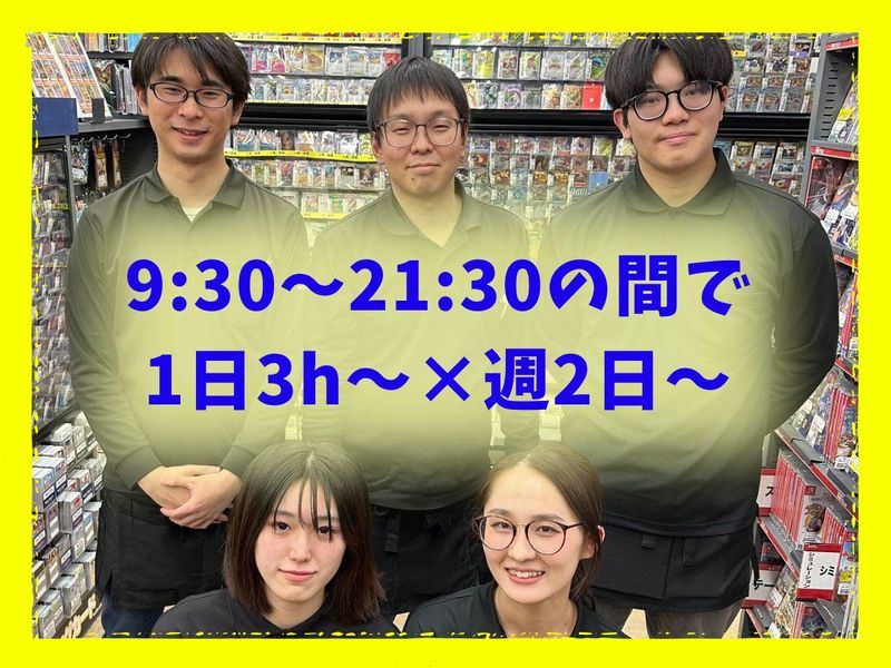 仕事内容 ✧₊⁎ ⁎⁺˳✧༚˚✧₊⁎ ⁎⁺˳✧༚˚✧₊⁎ ⁎⁺˳✧༚˚✧₊⁎ ⁎⁺ 大学生・高校生・フリーター活躍中! 本・ゲーム・ホビー・トレカ等 お好きな方も大歓迎! ★明るく元気な対応できる方、大歓迎★ ✧₊⁎ ⁎⁺˳✧༚˚✧₊⁎ ⁎⁺˳✧༚˚✧₊⁎ ⁎⁺˳✧༚˚✧₊⁎ ⁎⁺ ═════════════ ✨仕事紹介✨ ═════════════ 品出し、レジ打ち、買取、商品加工など お任せします! まずは、簡単な事からお願いするので 未経験でも安心です♪ 先輩スタッフが丁寧に教えます! ═════════════ ✨こんな方歓迎✨ ═════════════ マンガ・本・ゲーム・ホビー・トレカ・ フィギュア・アニメ等、 【大好きなモノ】に囲まれて 趣味で得た知識を活かすことも◎ バイトを通じて、趣味友もできるかも! 好きを仕事にしたい方大歓迎★ 学校終わりの学生さん、 ガッツリ働きたいフリーターさん にもピッタリです! 初バイトの方も、 仕事を通じて社会経験を積みたい、 という方も歓迎です! 本・CD・ホビー・トレカの 販売や買取を行っている 【ブックオフ】でお仕事始めてみませんか? 履歴書不要なので、お気軽にご応募下さい!