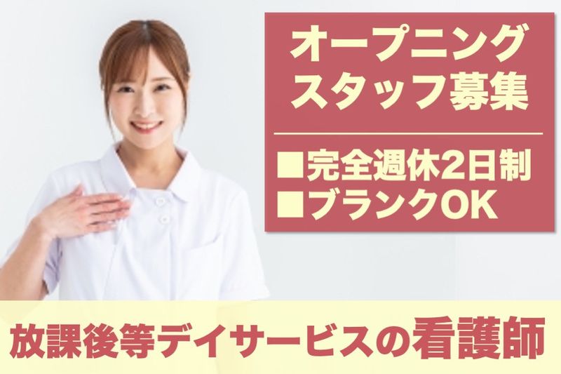 【アピールポイント】 2026年3月OPEN予定の放課後等デイサービスにて看護師を募集します! ■オープニングスタッフ ■時短正社員制度あり ■完全週休2日制 ■ブランクOK ■正看護師・准看護師ともに大歓迎 ■日勤のみの勤務 ■残業ほぼなし ■年齢不問 ■保育支援あり