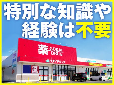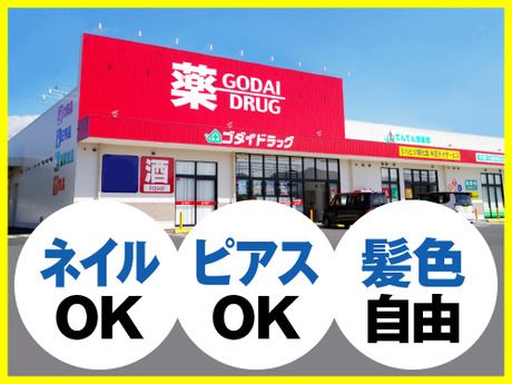 仕事内容 □■□主な仕事内容□■□ お薬、化粧品、日用雑貨、食料品まで、地域の生活インフラとして地域密着で 運営している「ゴダイドラッグ」のアルバイト・パートスタッフ募集です。 主に、レジ・接客・品出し業務をお任せいたします! 入社後の研修で丁寧にお教えしますので、初めてのアルバイトや ブランク明けでも安心してご応募下さいッ! ・レジ業務 ・商品の品出し、補充業務 ・接客業務(お客様へのご案内) ・商品の受注発注、在庫管理業務 ・清掃業務 ・開閉店業務 など ※調剤薬局併設店舗の場合は調剤補助業務が伴います。 面接時に調剤補助に関してヒアリングいたします。 □■□登録販売者資格の手当あり!□■□ 登録販売者資格(薬種商)をお持ちの場合は資格手当が支給されますッ!! 業界トップクラスの支給額となっております! ※管理者要件を満たした方:+100円 法定研修期間中の場合 :+40円 □■□登録販売者資格の取得サポートあり!□■□ パート・アルバイトさんも、社内勉強会や スマートフォン・タブレットでの学習ツールの利用など 資格取得に向けて、全面的にバックアップをしますッ! 試験を合格した際は、受験費用の会社負担いたします! □■□従業員の個性を尊重!□■□ ゴダイは従業員の個性を大切にしていますので 髪色・髪型は自由!ネイルOK!ピアスOK! (※食品加工を伴う一部店舗・職種では不可) □■□家計の味方!従業員特別購入制度!□■□ 当社で取り扱いしている商品の購入時は 従業員割引&ゴダイポイントの倍率UPで お得にご購入していただけます! (※一部対象外商品あり)