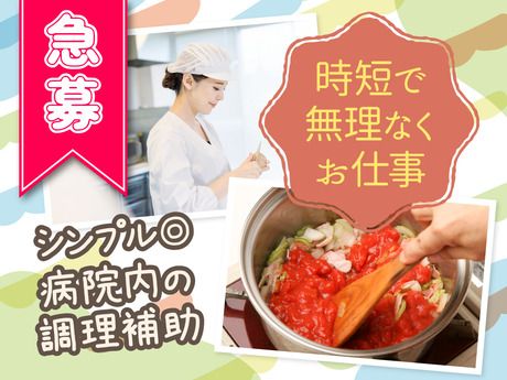 仕事内容 資格も経験も必要ナシ◎「料理の経験は家事くらい」それで大丈夫です!難しい調理経験なくても活躍できる♪ \料理好きな方にピッタリ♪/ 【病院厨房での調理補助】 *患者様用の食事盛付け *野菜の皮むき *食器の洗浄 などの業務をお願いします。 【1日のスケジュール(例)】 <08:30~>出勤、お仕事開始! <09:00~>食材カットや下準備 <10:30~>調理器具や食器の洗浄 <~12:00>お仕事終了!残業せず退勤♪ 家事感覚でできるので 調理業務が初めての方も始めやすい! 味付けなど難しい調理に関しては 調理師や社員が対応するので安心して下さい。 教育体制もしっかりしているので 分からないことも聞きやすい環境です♪ 資格や病院での調理経験がなくても活躍できます! * * * * * \こんなお悩みありませんか?/ 「学童がいっぱいで入れなくて」 「子供の習い事の送迎があるから フルタイムは厳しいなぁ」 「まだ扶養ははずれたくないんだよね」 「子供の帰宅時間までに帰りたい!」 「なんの資格ももってなくて…」 「私にできる仕事あるかな~」 面接のときに登録者の方から よく聞くお悩みなのですが、 今回のお仕事はそんな方たちにオススメです! 実際に小中学生のお子さまをもつ 30代・40代の子育てママさんが 多く活躍されています♪ 授業参観や個人面談など学校行事でのお休みや ママ友とのランチなどプライベートの予定とも 両立ができるお仕事です。 いままで社会人経験がなくても お仕事のブランクがあっても いつもの家事スキルを活かして働けるので 未経験でも安心してご応募ください♪ <NI_C3>