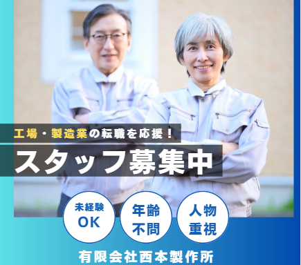 仕事内容 \\✨この求人のアピールポイント✨//  ̄ ̄V ̄ ̄ ̄ ̄ ̄ ̄ ̄ ̄ ̄ ̄ ̄ ̄ ̄ ̄ ̄ ̄ ̄ ✅時給1200円以上&賞与年2回あり ✅週3日・1日4h~OKで家庭と両立 ✅未経験・無資格からスタート可能 ✅創業50年超の安定企業で長く働ける ⭐会社について⭐  ̄ ̄V ̄ ̄ ̄ ̄ ̄ ̄ ̄ ̄ ̄ ̄ ̄ ̄ ̄ ̄ ̄ ̄ ̄ 創業50年を超える大阪市港区の老舗、 「有限会社西本製作所」です。 発電所や化学プラントなどに使われる、 特殊鋼ボルトの製造・販売をしています。 普段の生活では目立たない製品ですが、 インフラ整備には欠かせないものです。 安定的な経営基盤が自慢です。 ⭐仕事内容⭐  ̄ ̄V ̄ ̄ ̄ ̄ ̄ ̄ ̄ ̄ ̄ ̄ ̄ ̄ ̄ ̄ ̄ ̄ ̄ ●未経験OKのボルト製造・出荷作業 特別なスキルや経験は一切不要です。 シンプルな作業からお任せします。 ⭐具体的なお仕事⭐  ̄ ̄V ̄ ̄ ̄ ̄ ̄ ̄ ̄ ̄ ̄ ̄ ̄ ̄ ̄ ̄ ̄ ̄ ̄ ⏩業務範囲・対象 └工場内での製造補助や出荷準備など、 モノづくりを支える作業全般です。 <製造関連の作業> ・ボルトの製造作業 ・金属棒の切断 ・仕上げ作業 ★ベテランスタッフが丁寧に教えます。 危険な作業や難しい工程はなく、 未経験の方も安心して取り組めます。 <出荷関連の作業> ・商品の出荷作業(梱包) ・伝票作成 ★出来上がった製品を送り出す準備です。 伝票作成など簡単な事務作業も、 少しずつ覚えていってください。 ⏩進め方・スケジュール └8:20~17:00の間で4時間程度。 週3日~相談可能なので、 ライフスタイルに合わせて働けます。 ⭐キャリアアップ&教育制度について⭐  ̄ ̄V ̄ ̄ ̄ ̄ ̄ ̄ ̄ ̄ ̄ ̄ ̄ ̄ ̄ ̄ ̄ ̄ ̄ 未経験の方も丁寧に指導しますので、 安心してスタートできる環境です。 パートの方にも年2回の賞与支給や、 昇給のチャンス(前年度実績あり)を用意。 モチベーション高く働けます。 また、正社員登用制度もあります。 ⭐職場の雰囲気⭐  ̄ ̄V ̄ ̄ ̄ ̄ ̄ ̄ ̄ ̄ ̄ ̄ ̄ ̄ ̄ ̄ ̄ ̄ ̄ 従業員数7名の少人数で、 アットホームな雰囲気の職場です。 【仕事と子育ての両立を応援】 お子様の送迎時間に合わせた勤務や、 急な病気、学校行事での休暇など、 柔軟に対応できる体制があります。 主婦(夫)さんも活躍しやすい環境です。