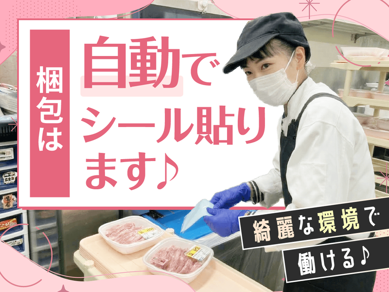 仕事内容 \\シニアスタッフさん活躍中!// "精肉部門"でのお仕事◎ 「肉をさばく」などは専任担当がいるため、 包丁を使う作業は一切ありません! ▼ ▼ ▼ ▼ ▼ ✅難しい調理なし! ✅こつこつもくもく一人作業♪ 8:00~12:00に勤務できる方を大募集✨ 土日どちらか含む勤務ができる方大歓迎 ⏩長期勤務歓迎◎扶養内勤務も可能! ⏩60代・70代のシニアさん活躍中 ⏩髪色は規定の範囲内でOK◎ *-*-*-*-*-*-*-*-*-*-*-*-* あなたにお願いするのは… お肉のパック詰めがメイン!  ̄ ̄ ̄ ̄ ̄ ̄ ̄V ̄ ̄ ̄ ̄ ̄ ̄ ̄ お肉をパックに詰めて、 シールをぺたっ✨ 付随する品出し・陳列・軽作業も ありますが、どれもシンプル♪ むずかしいことはありませんよ! <<1日のイメージ>> 朝イチは品出しで体を動かして、 後半は落ち着いてパック詰め…など メリハリをつけて働けます。 *-*-*-*-*-*-*-*-*-*-*-*-* ⭐土曜は時給50円、日祝は時給100円UP! ⭐仕事帰りにそのまま夕飯の買い出しも◎ ▶ここがポイント!  ̄ ̄ ̄ ̄ ̄ ̄ ̄ ̄ ̄ 勤務は8:00〜12:00の4時間だけ! お昼過ぎには終わるので、 午後はゆっくり家事をしたり、 別のお仕事に行ったりと、 プライベートとの両立もバッチリです◎ ▶研修について  ̄ ̄ ̄ ̄ ̄ ̄ ̄ まずは先輩の隣で「これをお願いね」 という簡単な作業からスタート◎ いきなり一人にすることはないので、 あなたのペースで慣れていけば大丈夫♪ *-*-*-*-*-*-*-*-*-*-*-*-*