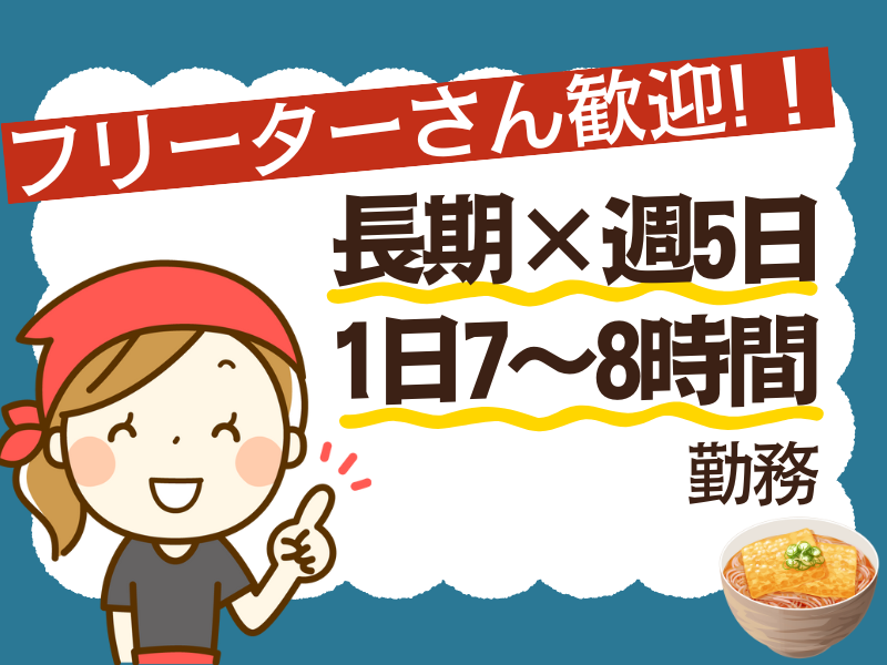 求めている人材 \ 年齢不問・学歴不問! / ◎明るい笑顔であいさつができる方 ◎未経験歓迎!人柄重視の採用です。 ※高校生はごめんなさい。 【必須条件】 ・長期勤務が可能な方 ・週5日勤務できる方 ・1日7~8時間勤務できる方 【歓迎条件】 ・フリーター歓迎 ・パート歓迎 ・接客や飲食経験がある方 (未経験でも大歓迎)
