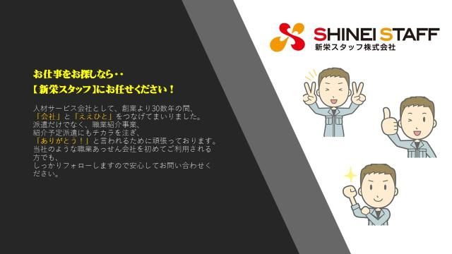 NEW☆【高月収♪守口市】半導体関連部品を制作するお仕事【車通勤OK!】 ▼▽▼▽平均年齢40半ば男性スタッフさんが多数活躍中!▼▽▼▽ コツコツ、丁寧にする作業が好きな方大歓迎♪ 『車通勤OK!』で通勤ラクラク! 気になられた方はぜひ!お気軽にお問い合わせください♪ ~オシゴトを始めるまでの流れ~ ● まずは一度お会いして、希望や条件などをお伺い致します! ○ 職場を見学し、雰囲気を確認!(自分にあっているか?等しっかりと見極めてください☆) ● 勤務開始! 応募からお仕事のご紹介まで、スピーディーに対応致します◎ 担当者になんでもご相談ください★