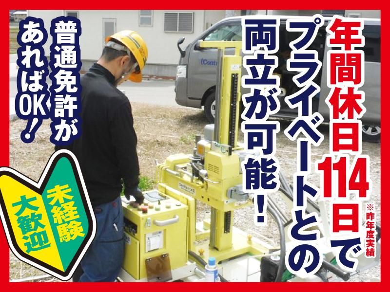 仕事内容 ✤ • • • · ·· ·ココがポイント· ·· · • • • ✤ ✅普通免許があればOK!未経験者大歓迎です! ✅未経験からでも月給27万~スタート! ✅週休二日制(土・日・祝休み)プライベートと両立可能です! ✅中型免許や移動式クレーン車など資格取得制度で無料で取得できます! ✅SDGsにも積極的に取り組んでおり、 従業員が働きがいを感じながら働き続けられる職場環境つくりを行っております! ✤ • • • · ·· · • • • ✤• • • · ·· · • • • ✤ <具体的なお仕事> 現場での業務をお願いします。 作業現場は石川県内で日帰りです。 ▶線路の保守 (地方鉄道の線路の点検、保守作業。レールや枕木の取り換えなどを行います) -業務の流れ- 線路がどのような状態か(どこに不備があるか・ 修繕の必要があるかなど)データを取ります ↓ 不備がある箇所の工事準備を行います ↓ 得られたデータに沿って実際に工事を行います ↓ 完成後、しっかり修繕できたか再度データを取ります ▶地盤改良のサポート業務 住宅を建てる前に必要な、調査や補強を行います。 建物を建てるための土台を補強します。 専用の機械で補強が必要な箇所に筒を入れ、 そこに専用の液体を流し込み、地盤を補強します。 補強した所に問題がないか、確認の業務をお願いします。 当社で行う業務は、特殊な業務ですので ほとんどが未経験からのスタートです! 1つの現場では、スタッフ2〜3名のチームで業務を行います。 入社後まずは、先輩スタッフの補助から始めていただき、 徐々にできることを増やしていきます。 先輩スタッフが一つひとつ丁寧にお教えしますので、ご安心くださいね。 将来的に役職があるポジションも目指せる環境です! <1日の流れ(一例です)> 8:00 出勤、朝礼 8:15 現場へ移動 8:45 午前の業務開始 (線路のデータ取り。どこに不備があるか・修繕の必要があるかなどをチェック) 12:00 休憩 13:00 午後の業務開始 (線路の不備箇所の工事準備・工事) 16:30 帰社 17:00 退勤 仕事が終われば帰宅できるので、 夕方の時間を有効に使える日もあります! <夜勤について> 1日の中で日勤・夜勤がある場合は、 日勤は8:00~14:00までや、15:00までの日もあります。 14:00まで終わった場合は、夜勤が始まる 21:00までは自由時間なので家に帰って休む人も。 夜勤は21:00~翌6:00が定時、早く終わる日もあり! 夜勤明け休みが必ずあるので、ゴルフや釣りに行ったりと 趣味の時間にあてるスタッフもいます♪ たとえば木曜日に夜勤があれば、金・土・日と 3連休になることもあるので家族の時間に使ったり、 旅行に行くこともできます! <仕事をする環境> 現在、現場スタッフは6名(20〜60代)在籍しています。 1つの現場で、2〜3名のスタッフが集まって業務を行います。 休憩時間は、ゴルフや野球など趣味の話をしたり 一緒にコーヒーを飲んだりと和気藹々としています。 体を動かす仕事になるので、体を休めることも重要です。 休憩中は横になったり、仮眠を取ったり 思い思いに過ごせる環境です。 <資格取得支援制度について> 資格取得費用は全額当社で負担いたします。 将来的には資格を取得していただき、 重機の操作も行います。 ・中型免許 ・移動式クレーン車 ・玉掛 ・1級、2級土木施工管理 ・フォークリフト ・ガス溶接 ・大型特殊 その他、建設機械に携わる資格など。 一生モノの技術を身に付けられるお仕事です! <社長から一言> 現在は軌道工と地盤調査の事業を行っておりますが、 今後は新たな事業にも挑戦していこうと思っています。 頑張りを評価してもらいたい方や、仕事にやりがいを求めている方、 責任制のある仕事に携わりたい方にはピッタリ! 小規模の会社のため、将来的に現場の責任者を任せられたり、 大きい現場を任せたりとやりがいのある仕事が可能です。 小規模ならではの風通しも良く、 新しいことにもチャレンジできる環境が整っています。 できることが増えれば、その分収入もUPしますので、 意欲的に取り組める方をお待ちしています! 私は能登出身です。 現在働いている社員にも能登出身の方がおります。 当社では、能登半島地震からの 一日も早い復興をサポートしております。 働き口を探している方々に できる限り寄り添えればと考えておりますので 求職希望の方は、お気軽にご相談くださいね。