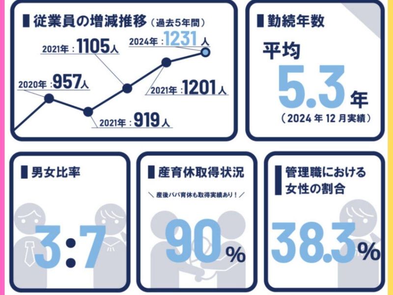 職場環境 ・年代:20代64名/30代91名/40代82名 ・男女比率:(女性7:男性3) ・仕事スタイル:チーム制(社員4割、アルバイト6割) ・チーム人数:15名前後 ・担当:約5~10社のクライアントを担当。 喫煙所:喫煙所あり(屋外)