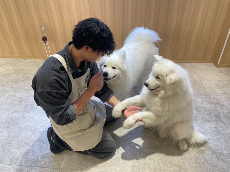 仕事内容 可愛いサモエドに囲まれながら働けるドックカフェです♪ カフェといっても、ドリンクはセルフ式で食事の提供もないため調理業務はありません! 「犬が好き」「人とコミュニケーションを取り合いながら働くのが好き」そんな方にピッタリのお仕事!ぜひご応募ください!! サモエドたちのお世話があるため、シフトは年中無休で募集しています! 朝の営業準備は子犬がある店舗は特に忙しいですが、お仕事がたくさんあるので充実した時間を過ごせます♪ バイトリーダーになった場合など、昇給あり! 具体的なお仕事内容は・・ ◆店内管理・清掃など 清掃を特に重視しています。 お客様とサモエドたちが快適に過ごせるよう、清潔な店舗作りをお願いします! ◆SNS運用 InstagramなどのSNSに力を入れています! どうしたら多くの人にお店のことを知ってもらえるか、日々考えながら取り組んでいただきたいです! ◆犬のお世話、体調管理、しつけ ◆接客 ◆お散歩 ◆来店受付(会計、流れ説明) などをお任せします! お仕事はイチから丁寧にお教えするので、未経験の方もご安心ください♪