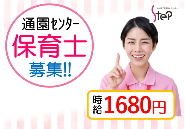 ★時給1680円★ 時間固定勤務 / 15時に定時退社 / 土日祝休み♪ / 家庭と両立バッチリ 株式会社ステップグランドスタッフ 療育補助の保育士 . ■案件NO,15832■お電話で案件番号をお伝えください! *:;;;:*:;;;:**:;;;:*:;;;:**:;;;:*:;;;:* 児童発達支援センターの 保育士求人案件です♪ *:;;;:*:;;;:**:;;;:*:;;;:**:;;;:*:;;;:* 【働きやすさ】 ◆土日祝休み! ◆15時までのお仕事 ◆残業ありません! 時間固定勤務なので 予定がたてやすい◎ 療育が初めてでも大丈夫☆ 丁寧にサポートしますので 保育士としてのスキルアップを 目指したい方にぴったり! _____________ ▼こんな施設です 0~5歳児が通う 児童発達支援センターです! \クラスは2つあります/ ①身体的な障がい児の通うクラス →定員25名 ②知的障がい児の通うクラス →定員35名 施設を良くするための意見は どんどん採用!! 利用児童のことをとても 大切に考えている施設です☆ _____________ ◆やりがいポイント◆ 保育園よりも長期的に関わり合いを もつことができ、保育園では学べない 生活に必要なスキルや、 学習支援のカリキュラム内容など 保育士としてのスキルアップもできます! 障がいのある子どもたちへの知識や 支援方法を身につけることもできます! _____________ \ステップのここが嬉しい/ 施設への見学時も同行します☆ 働く上で伝えておきたいこと、 時間の相談などなど ご自身では伝えにくいことも コーディネーターが伝えますので 見学時も安心です♪ 事前に職場の雰囲気を知ってから 入職に繋げることができるのも 嬉しいポイント! 1人で悩まなくても大丈夫! 保育士としての経験がある コーディネーターが あなたのお仕事開始まで 精一杯サポートします! もちろん、お仕事開始後も 継続的にサポートしますので ご安心ください☆ ・・・・・・・・・・・・・・ \希望登録/も受付中! 希望の条件で働けるチャンス☆ 通勤時間や、勤務時間、勤務曜日など ご希望をお聞かせいただいた上で あなたにぴったりの園さんを ご提案させていただきます♪ .