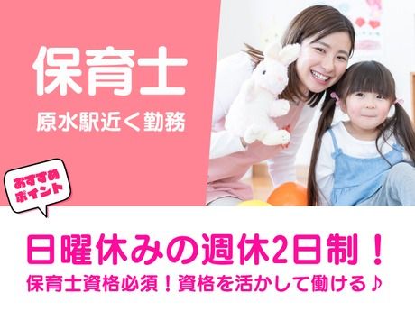 <★保育士資格者歓迎!>土日祝休みOK♪週休2日制でメリハリ勤務♪