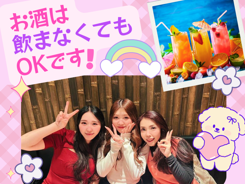 求めている人材 完全人柄採用! 応募するか迷っている方も 面接に自信がない方も まずはお気軽にご応募お待ちしています! 【こんな方は歓迎です♪】 ・人とお話することに抵抗がない方 ・話し上手というより聞き上手な方 ・接客にチャレンジしたい方 ・効率的に稼ぎたい方 ・お酒が飲めない、苦手な方OK ・学歴不問 ・高卒OK ・大学生、専門学生歓迎 ・第二新卒、既卒歓迎 ・バイト初心者歓迎 ・夜職未経験歓迎 ・ナイトワーク未経験歓迎 ・接客未経験歓迎 ・掛け持ちで稼ぎたいフリーター歓迎 ・昼職と両立したい方歓迎 ・長期歓迎 ・友達と一緒に働きたい方歓迎 ・シフト自由な職場で働きたい方 【こんな方は採用率UP!】 ・ガッツリ稼ぎたい方 ・キャバクラやガールズバーに興味がある方 ・バーやラウンジ、スナックに興味がある方 ・シーシャバーで勤務経験がある方 ・カウンタースタッフ経験者 ・接客経験者 【必須条件】 ・18歳以上の方(法令による) ハローワークでお仕事をお探しの方にもピッタリ! 【こんな方が活躍中♪】 ・20代、30代活躍中 ・主婦さん活躍中 ・掛け持ちで働くフリーターさん ・介護スタッフとして働く正社員 ・元ネイリスト ・大学生さん ・夜職経験者 ・未経験の方