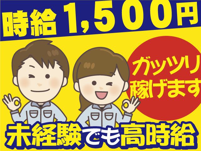 未経験OK!時給1,500円の高時給スタート! 寮完備で送迎ありだから生活面も安心!男女共に活躍中!