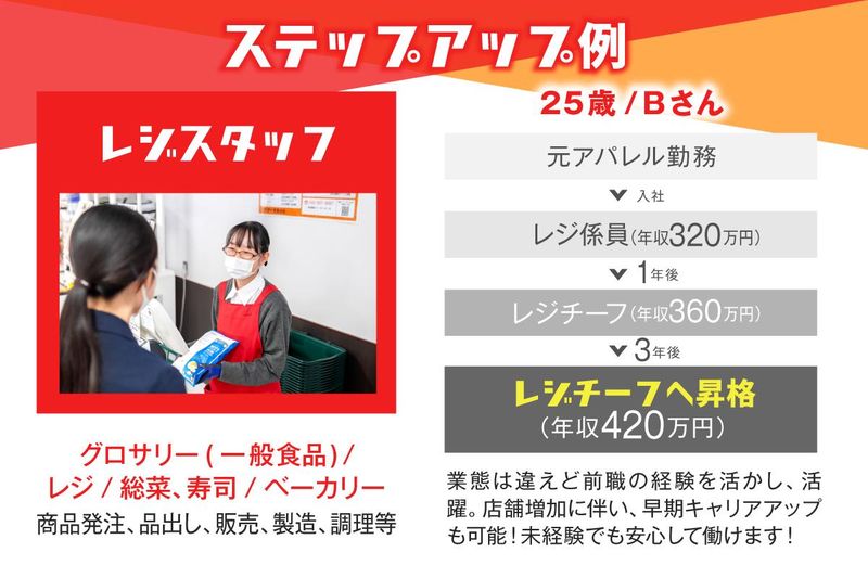 仕事内容 ★2026年5月オープン予定★ <オープニングスタッフ大募集> 安心できる働き方を始めたい方へ  ̄ ̄ ̄ ̄ ̄ ̄ ̄ ̄ ̄ ̄ ̄ ̄ ̄ ̄ ̄ ̄ 「シフトが安定しない」 「次の契約が不安」 そんな働き方から 一歩抜け出したい方に、 正社員の仕事は向いています。 オーケーのレジは、 必要以上の声かけや 複雑な案内はほとんどありません。 シンプルな業務の中で、 丁寧さや気配りを 大切にできるのが魅力です。 慣れてくると、忙しい時間帯は 驚くほどあっという間に過ぎていきます。 「暇で時間が進まないストレスがない」 そんな働き方を好む方にとって、 レジは仕事の楽しさを 感じやすいポジションです。 ⭐業界でも注目される成長企業です 私たちオーケーは、関東を中心に 店舗展開を続ける ディスカウントスーパーです。 「高品質・Everyday Low Price」を掲げ、 現在170店舗以上を展開。 おかげさまで38期連続の 売上増を達成しています。 新店舗の出店も加速しており、 1店舗あたり約40億円の 規模を誇る大型店も多数。 今後も成長を続ける企業として、 現場で活躍してくださる方を 積極的に採用しています。 ╋━━━━━━━━━━━━━━━━━━╋ 自宅から通勤90分圏内の店舗に配属 ╋━━━━━━━━━━━━━━━━━━╋ 配属先は、ご自宅から 概ね90分以内の通勤圏内で決定。 転居を伴う転勤はありませんので、 地域に根ざして働きたい方にも最適です。 ━━━━━━━━━━━━━━━━━━━ “ただ打つだけ” の仕事ではありません ━━━━━━━━━━━━━━━━━━━ レジ部門にて、 セミセルフレジ業務を 中心に担当いただきます。 【 主な業務 】 ■セミセルフレジでの会計対応 (バーコードスキャン、カゴ詰め) ■サービスカウンター対応 (返品・問い合わせ・各種手続き) ■日々の売上管理・現金チェック ■お客さま対応 (常連さんとのコミュニケーションなど) ■店舗状況に応じたチームでの連携業務 オーケーのレジは “ただ打つだけ” の仕事ではありません。 商品を崩れにくく詰める工夫や、 タイミングを読んだレジ展開など、 シンプルながら奥深い仕事です。 ━━━━━━━━━━━━━━━━━━ レジの仕事が「安定」につながる理由 ━━━━━━━━━━━━━━━━━━ ■ノルマなしで、お客さまに向き合える 数字を追う仕事ではなく、 必要とされるタイミングで 集中して接客できる環境です。 来店ベースの接客なので、 過度なプレッシャーがありません。 ■忙しさが“働きやすさ”に変わる ピーク時はレジが フル稼働することもありますが、 他部門が応援に来てくれるなど、 チームで乗り切る体制が整っています。 時間が一瞬で過ぎるほどの没入感が、 「充実感」に変わります。 ━━━━━━━━━━━━━━━━━━━━ ほかにも、安心して働けるポイントが充実 ━━━━━━━━━━━━━━━━━━━━ ⭐未経験から挑戦しやすい環境 ・飲食・販売・サービスなど、 異業種出身者が多数活躍 ・正社員デビューの方も多く在籍 入社後は基礎から学べる研修があり、 分からないことは すぐ周りに聞ける雰囲気です。 初めての正社員でも 安心してスタートできます。 //////////////////// ⭐協力し合えるレジチーム ・レジ部門は正社員2名 +パートスタッフ20〜30名の体制 ※店舗により体制は異なります。 ・忙しい時間帯は周囲と連携して対応 「困っていたら声を掛ける」 という文化が根づいており、 一人で抱え込まず、 チームで動けるのが特徴です。 //////////////////// ⭐努力がきちんと評価される環境 ・昇給年1回 ・チーフ職へ昇格後は賞与年4回 ・年収例:360〜380万円 (サブチーフ/入社2〜3年) 日々の取り組みを見てくれるので、 店舗運営やレジトレーナーなど、 将来のキャリアの選択肢も広いです。