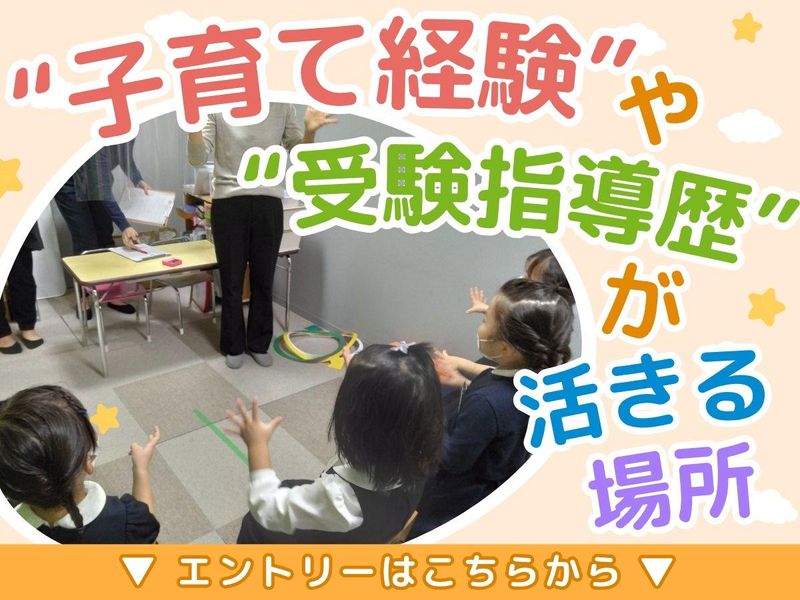 求めている人材 ⭐ 《 こんな方歓迎 》 ⭐ ✅受験幼児教室での先生の経験のある方 ✅お子様が幼稚園、小学校受験の経験をお持ちの方 ✅子供相手に教える仕事の経験がある方 ✅幼児受験指導経験者 ✅幼稚園教諭・保育士などの資格がある方 ✅土曜・日曜・祝日に月数回勤務可能な方 ✱経験者歓迎 ✱長期勤務歓迎 ✱主婦・主夫歓迎 ✱WワークOK ✱ブランクOK ・・・・・・・・・・・・・・・・・・・・・・・・・・ ⛅今回募集するお仕事は ・・・・・・・・・・・・・・・・・・・・・・・・・・ 常勤講師や非常勤講師、 教室運営や個別指導、 集団指導や教育サポートなどの 経験が活かせます!