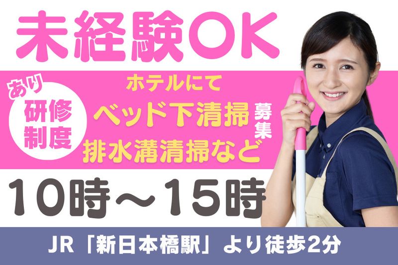 【仕事内容】 \JR「新日本橋駅」より徒歩2分/ ホテルの客室で、日々の清掃では中々 行き届かないところを清掃するお仕事です 【仕事内容】 ●ベッド下の清掃 ●バスルームの排水口清掃 ●エアコンのフィルター清掃 ●カーペットの染み抜き など、お客様が快適に過ごせる様に お部屋の隅々まで徹底的に清掃するので 綺麗好きには持って来いのお仕事です。 わからないことがあっても 先輩スタッフがフォローします! ✅留学生活躍中 中国、ベトナム、フィリピン、 スリランカからの留学生が活躍中の現場です♪ マニュアル整備も進めており、 働きやすい環境整備に取り組んでおります! 少しでも興味がございましたら ご応募、ご連絡下さい。 お待ちしております。 【求人ID-A0020-1】