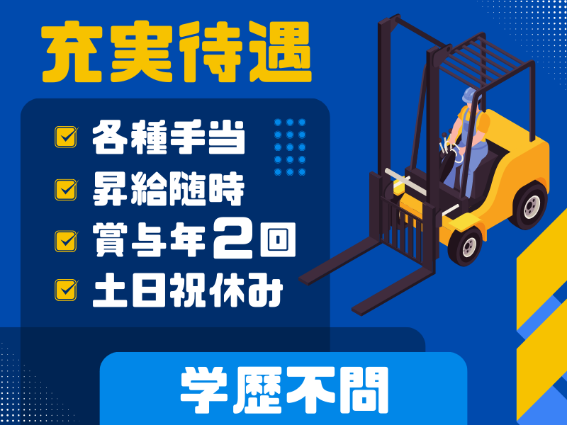 【保険制度】 雇用保険、労災保険、健康保険、厚生年金 待遇・福利厚生 【福利厚生】 ・各種社会保険完備 ・制服貸与 ・退職金制度 ・再雇用制度 ・各種祝い金(入学、出産、結婚など) ・従業員親睦会 ・資格取得支援制度(無料) ・車(マイカー)通勤OK ・バイク通勤OK ・自転車通勤OK ・自転車貸与 ・駐車場あり ・駐輪場あり ・研修(入社時基礎研修、フォローアップ研修、中級研修、OJTなど) ・リフトコンクール、外部コンテスト表彰、報奨金制度
