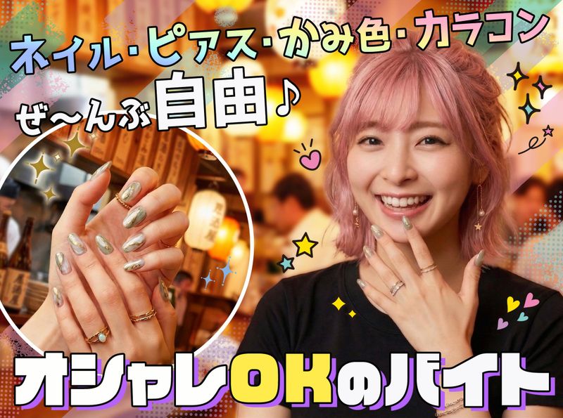 ネイル・ピアス・カラコン自由の居酒屋の深夜帯スタッフ