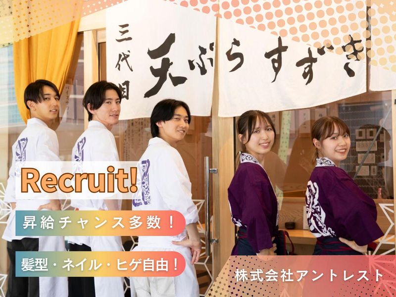仕事内容 *〜*〜*〜*〜*〜*〜*〜*〜*〜* <<キッチンスタッフ募集×成長企業アントレスト>> 「“温かいバトン”を街へ届ける仲間を募集します!」 *〜*〜*〜*〜*〜*〜*〜*〜*〜* \アントレストで働くポイント/ ★ 経験より“人の温かさ”を大切にする会社 ★ 店長・料理長へのキャリアアップが最短距離 ★ 週休2日制/各種手当・福利厚生が充実 ★ 髪色・ピアス・ネイル・ヒゲOKの自由な社風 ★ BBQ・スポーツ・生産者訪問などイベント多数 ★ 理念「PASS THE HOT BATON」に共感できる方歓迎 ································ 【仕事内容】 キッチンスタッフとして、調理業務をお任せします。 【具体的には…】 ◆仕込み(魚の下処理・野菜カットなど) ◆調理・盛り付け ◆簡単な調理補助 ◆食材管理・衛生管理 ◆片付け・清掃 など まずは包丁の持ち方や盛り付けなど、基礎から丁寧にお教えします。 未経験の方でも安心してスタートできる環境です。 ································ 【アントレストってこんな会社!】 〜理念「PASS THE HOT BATON」〜 アントレストは「温かいバトンを街へつなぐ」ことを理念に掲げ、 美味しい料理・快適な空間・気遣いあるサービスを通じて、 “少し気持ちが温かくなる瞬間”を生み出す会社です。 ◆ 社名の由来 entrest= ・アントレプレナー(起業家) ・レストラン ・EST(最上級) を掛け合わせた造語。 「飲食で最高の起業家集団になろう」という想いが込められています。 ◆ 誕生ストーリー 代表は幼い頃から“起業”への強い憧れを抱き、 東京でベンチャー企業の現場を経験する中で 「いつか仲間と一緒に事業をつくりたい」という想いを強くしていきました。 その後、飲食業で働いていた仲間とのご縁がきっかけとなり、 “地域に本当に必要とされる店づくりをしたい”というビジョンが明確に。 おしゃれさや流行ではなく、 「その街にあったら嬉しい場所」をつくることを大切にし、 仲間の持つ魚の知識・経験を活かした業態が生まれました。 これが、アントレストの始まり。 創業当時から変わらないのは、 “人の温かさで店をつくり、店の温かさで街を良くする”という考え方で、 現在の理念「PASS THE HOT BATON」は、 この原点から自然に生まれたものです。 ◆ MISSION アントレストでは、 「お店は街へのプレゼント」 「料理はお客様へのプレゼント」 「賄いは仲間へのプレゼント」 という想いを大切にしています。 誰かを喜ばせるために働く── その考え方がすべてのサービスの根底にあります。 賄いは単なる食事ではなく“学びや経験というプレゼント”でもあり、 仲間同士が自然に支え合える温かい文化を育てています。 社長=校長先生 店長=担任の先生 と思っていただいて構いません。 スタッフ一人ひとりの人生に寄り添う存在でありたい、 という独自の教育観を持っています。 店長はスタッフにとって身近な存在であり、 日々の関わりが“その人の未来の価値観を左右する”と本気で考えています。 だからこそ、怒るのではなく、愛情を持って叱り寄り添い、押しつけるのではなく気づきを与える。 “温かい先生”が多い組織だから、自然と優しい空気が広がります。 この文化が、 アントレストが大切にする「PASS THE HOT BATON」── 温かさのバトンをつなぐ理念と深く結びついています。 ◆ VISION 「あたたかい人 → あたたかい店 → あたたかい街」へ 社員もアルバイトも理念カードを携帯し、日報で理念を共有しています。 その積み重ねにより、 “どう行動すべきか”ではなく “どうしたら相手が喜ぶか”を自然に考えられるスタッフが育ちます。 この小さな温かさの連鎖こそ、 アントレストが街にもたらしたい価値であり、 働く人たちの誇りでもあります。 ································ 【ここが魅力!】 ◆ 裁量あるメニュー開発ができる 日替わりメニューはスタッフが自由に提案可能。 実際に作って提供し、お客様の反応も見られます。 ◆ キャリアアップが明確 一般社員 → 副主任 → 副店長 → 店長 → マネージャー 最短距離で成長できる評価制度を整備。 ◆ 温かく自由な社風 元気な声より、“素の優しさ”を大切にする接客方針。 髪色・ネイル・ピアス・ヒゲOKで個性を活かせます。 ◆ イベント多数で仲が良い 野球・バスケ・フットサル、 醸造所などの生産者訪問、 月1の店舗飲み会(3,000円会社補助)など。 ································ 【働くお店:天ぷらすずき 蒲田】 2017年5月10日に 蒲田駅近くに開業した天ぷら専門店。 職人が目の前で一品ずつ揚げる昔ながらの "江戸前スタイル"を大切にしています。 独自に配合したごま油を使うことで、 衣は軽やかで香ばしく、素材本来の旨味を 引き出すことにこだわっているのが当店。 カウンター越しに提供された 揚げたての天ぷらは、サクッと小気味いい 音を立てて食欲をかき立てます。 気取らない食堂の温かさも、 "食"がさらに進む空間演出をサポート